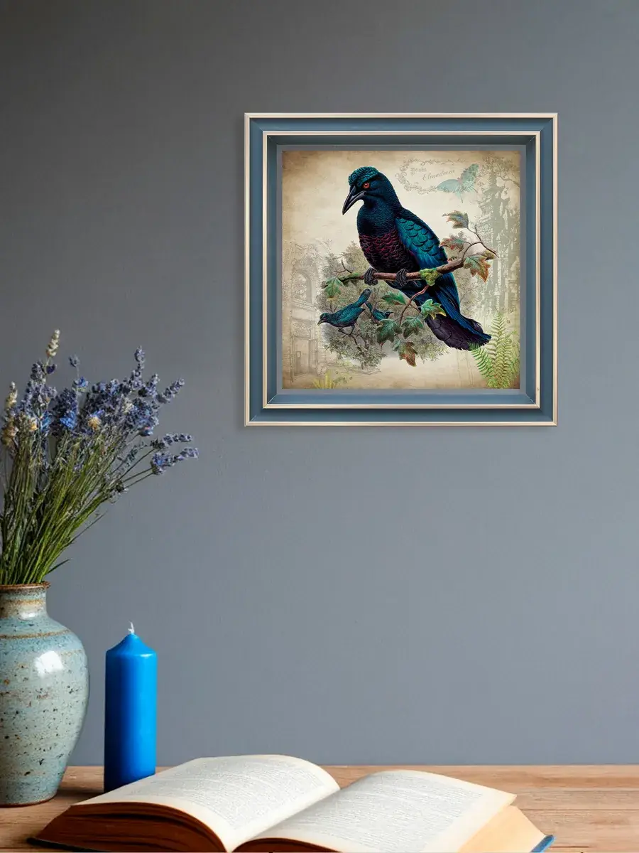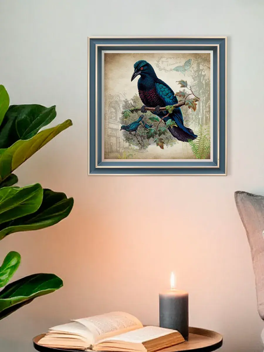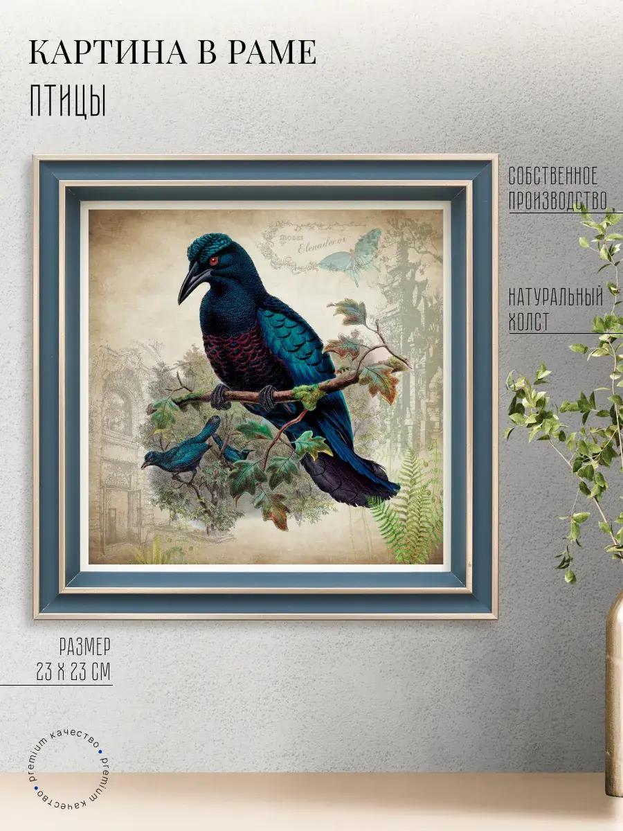 Чудесная картина, напечатанная на натуральном холсте, станет центром притяжения внимания в вашем доме. Сказочные птички привнесут в ваш интерьер ощущение покоя и умиротворенности.