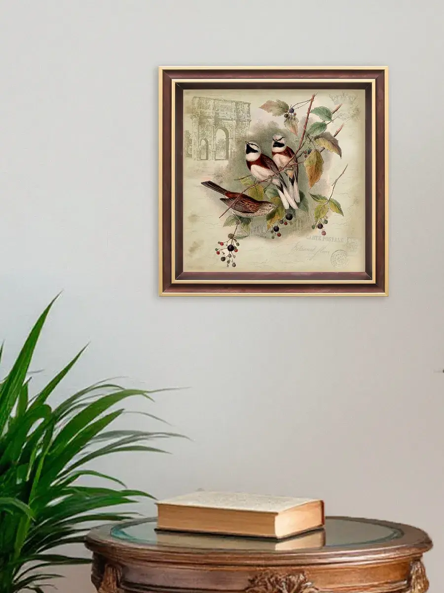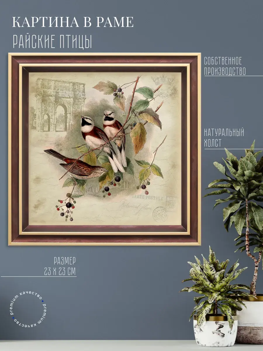 Чудесная картина, напечатанная на натуральном холсте, станет центром притяжения внимания в вашем доме. Райские птички привнесут в ваш интерьер ощущение покоя и умиротворенности.