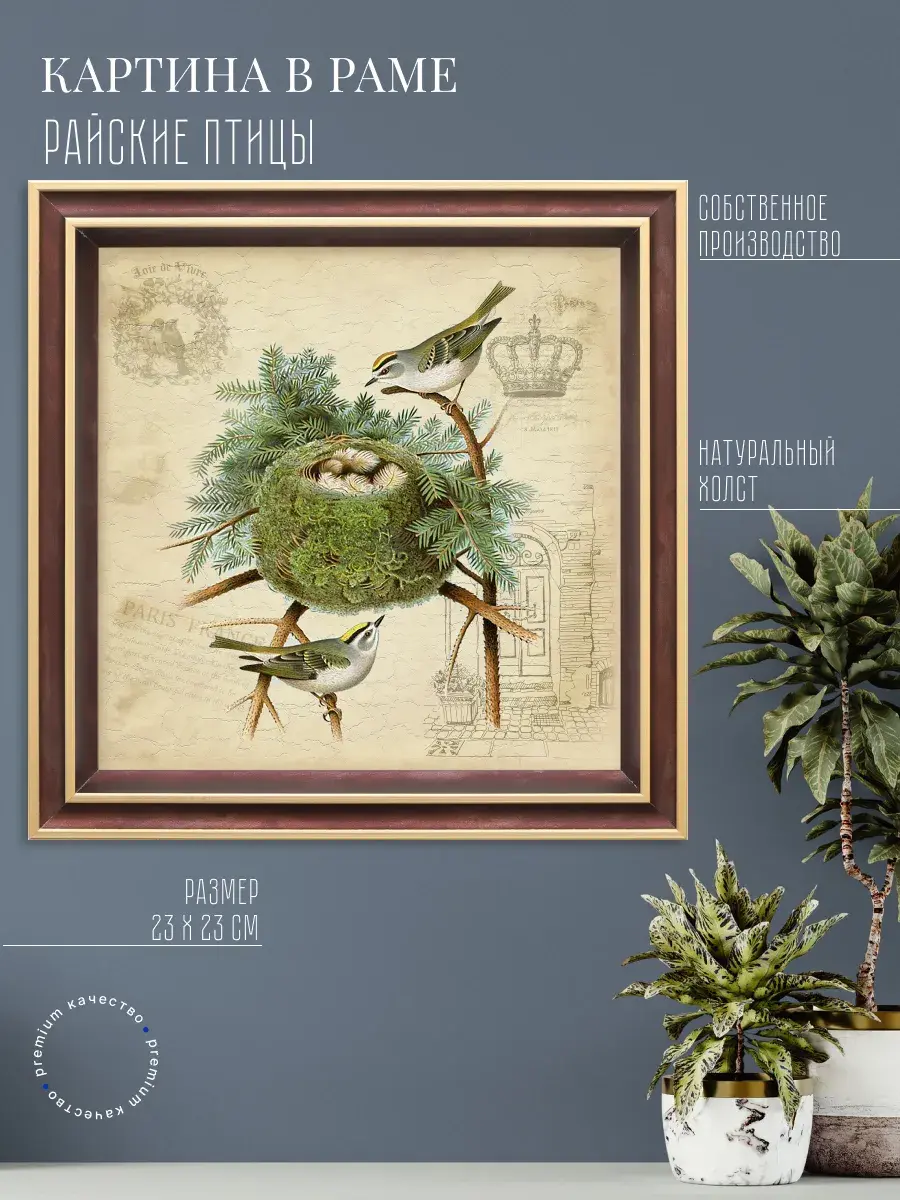 Чудесная картина, напечатанная на натуральном холсте, станет центром притяжения внимания в вашем доме. Райские птички привнесут в ваш интерьер ощущение покоя и умиротворенности.