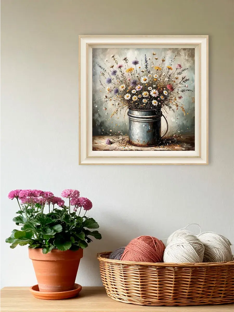 Чудесная картина, напечатанная на натуральном холсте, станет центром притяжения внимания в вашем доме. Удивительной красоты букеты с ромашками привнесут в ваш интерьер ощущение покоя и умиротворенности.