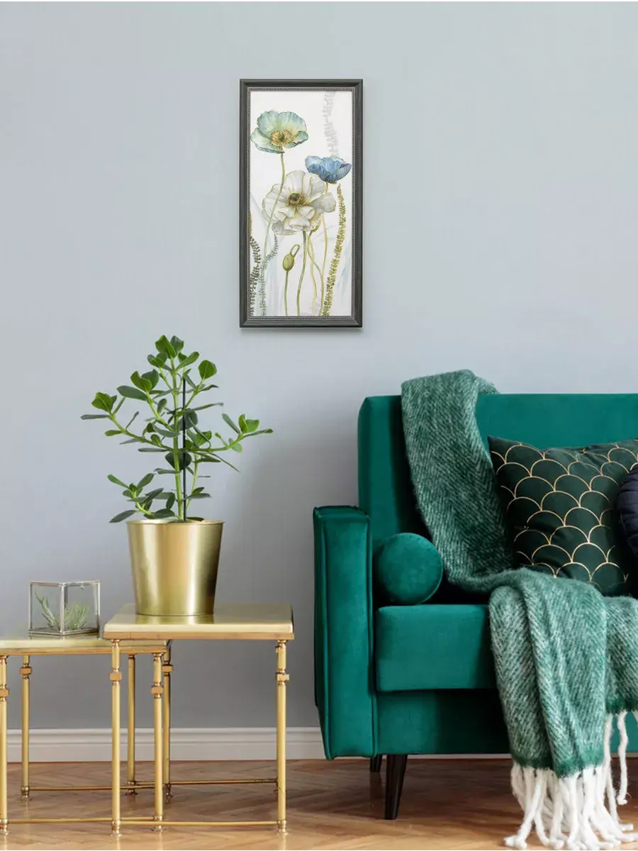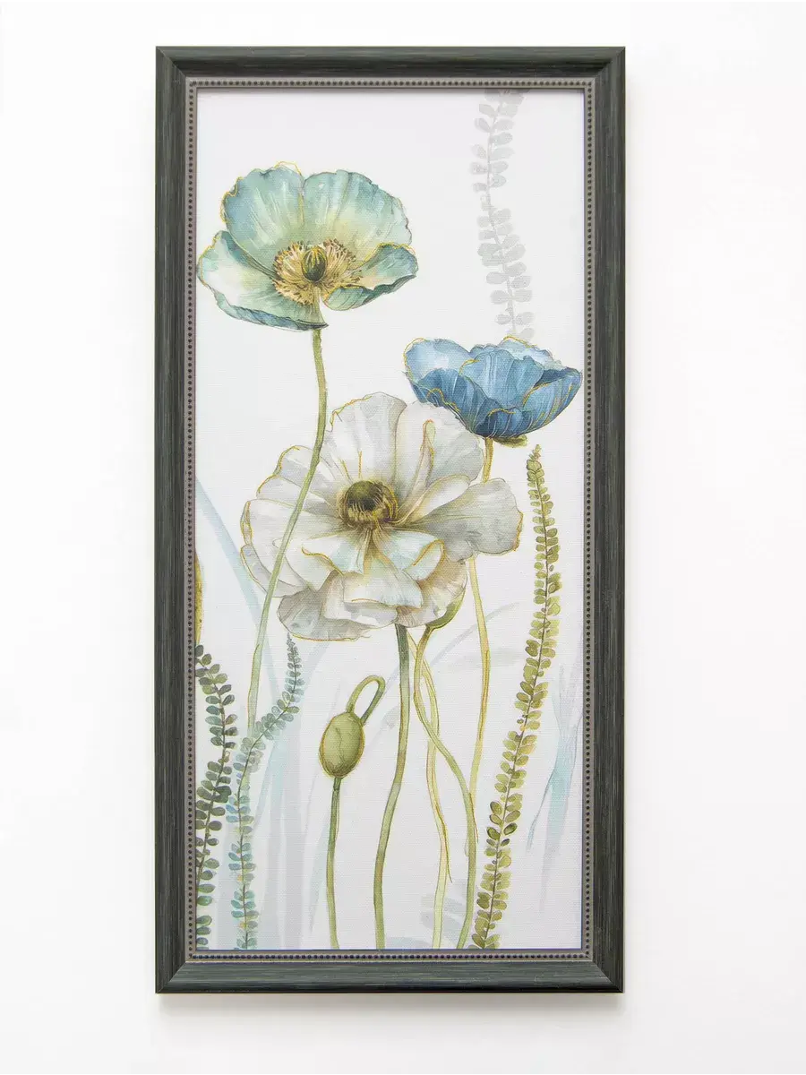 Картина напечатана на натуральном холсте, покрыты лаком. Лаконичная багетная рама серо-зеленого цвета добавляет картинам аккуратный законченный вид. Размер с рамой 23*47 см, размер холста 20*44 см.