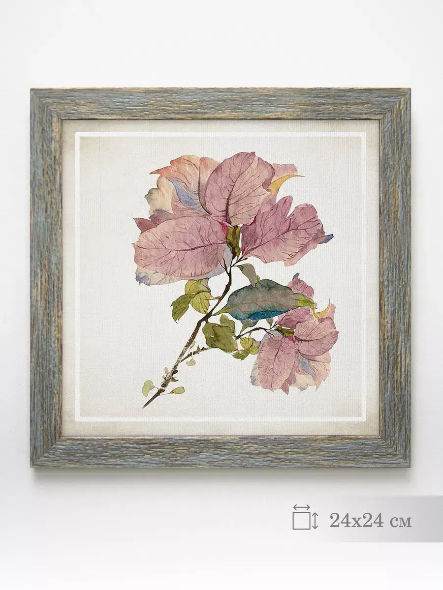 Настенный декор в раме - это современный способ украсить стены вашего дома, создать коллекцию ярких необычных картин дизайна Elenadecor. Картина напечатана на натуральном холсте, покрыта лаком. Для защиты от провисания холст наклеен на хдф. Рама из полиуретана полуматовая под дерево спокойного зеленоватого цвета. Картины небольшого размера 24*24, 34*34 и 44*44 см по раме, холст 20*20, 30*30 и 40*40 см соответственно, для создания коллекций. Упакованы в коробку, крепление для стены в комплекте.