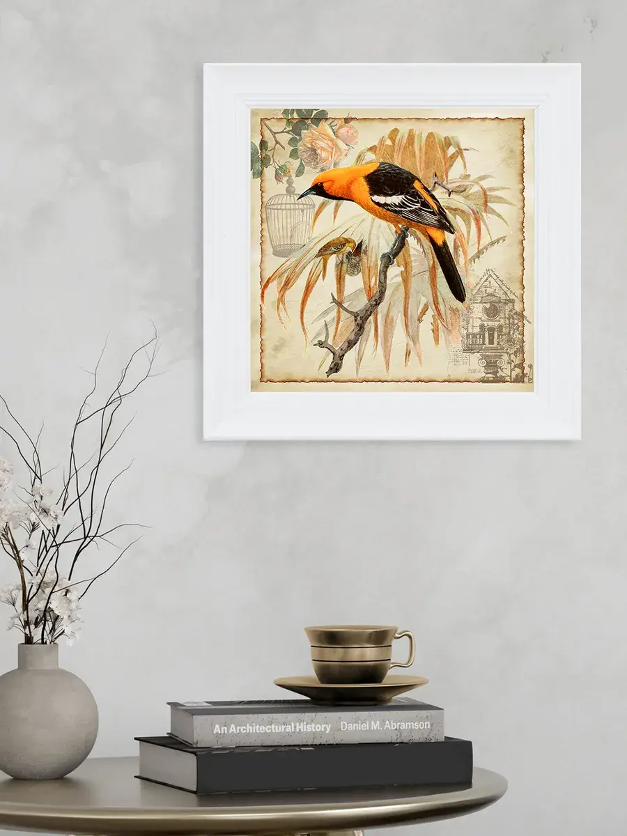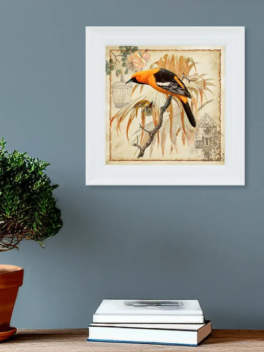Чудесная картина, напечатанная на натуральном холсте, станет центром притяжения внимания в вашем доме. Сказочные птички привнесут в ваш интерьер ощущение покоя и умиротворенности.