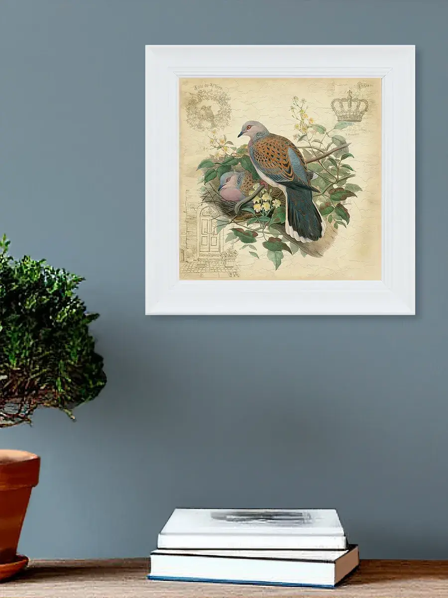 Чудесная картина, напечатанная на натуральном холсте, станет центром притяжения внимания в вашем доме. Сказочные птички привнесут в ваш интерьер ощущение покоя и умиротворенности.