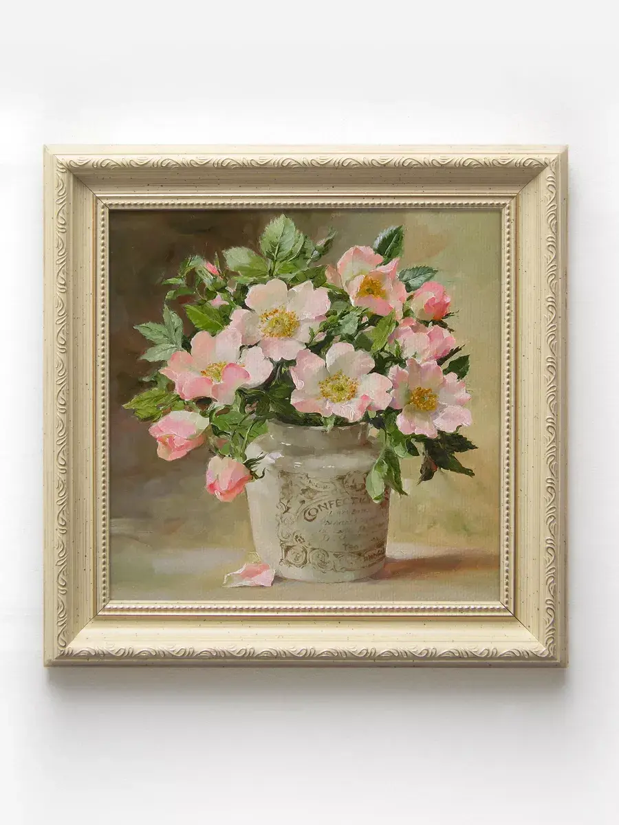 Картина напечатана на натуральном холсте, покрыта лаком. Для защиты от провисания холст наклеен на хдф. Рама из полиуретана классическая теплая бежевая полуматовая под дерево. Картины небольшого размера 25*25 см по раме, холст 20*20, см, для создания коллекций. Упакованы в коробку, крепление для стены в комплекте.