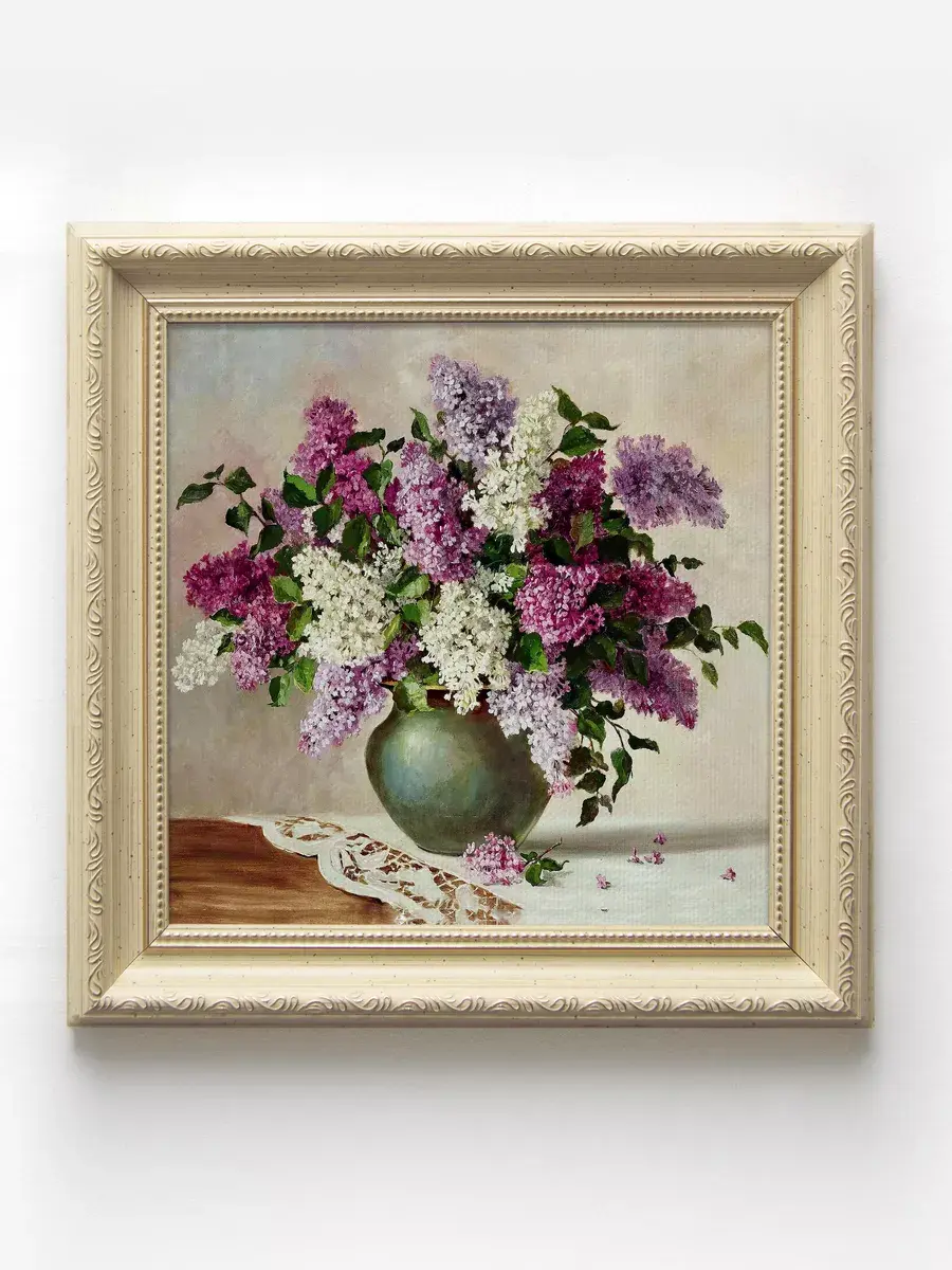Картина напечатана на натуральном холсте, покрыта лаком. Для защиты от провисания холст наклеен на хдф. Рама из полиуретана классическая теплая бежевая полуматовая под дерево. Картины небольшого размера 25*25 см по раме, холст 20*20, см, для создания коллекций. Упакованы в коробку, крепление для стены в комплекте.