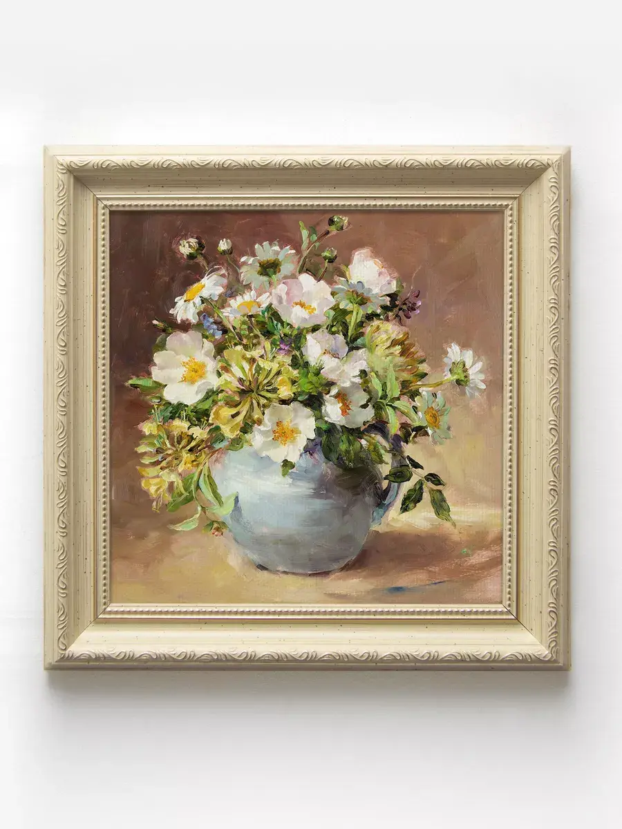 Картина напечатана на натуральном холсте, покрыта лаком. Для защиты от провисания холст наклеен на хдф. Рама из полиуретана классическая теплая бежевая полуматовая под дерево. Картины небольшого размера 25*25 см по раме, холст 20*20, см, для создания коллекций. Упакованы в коробку, крепление для стены в комплекте.