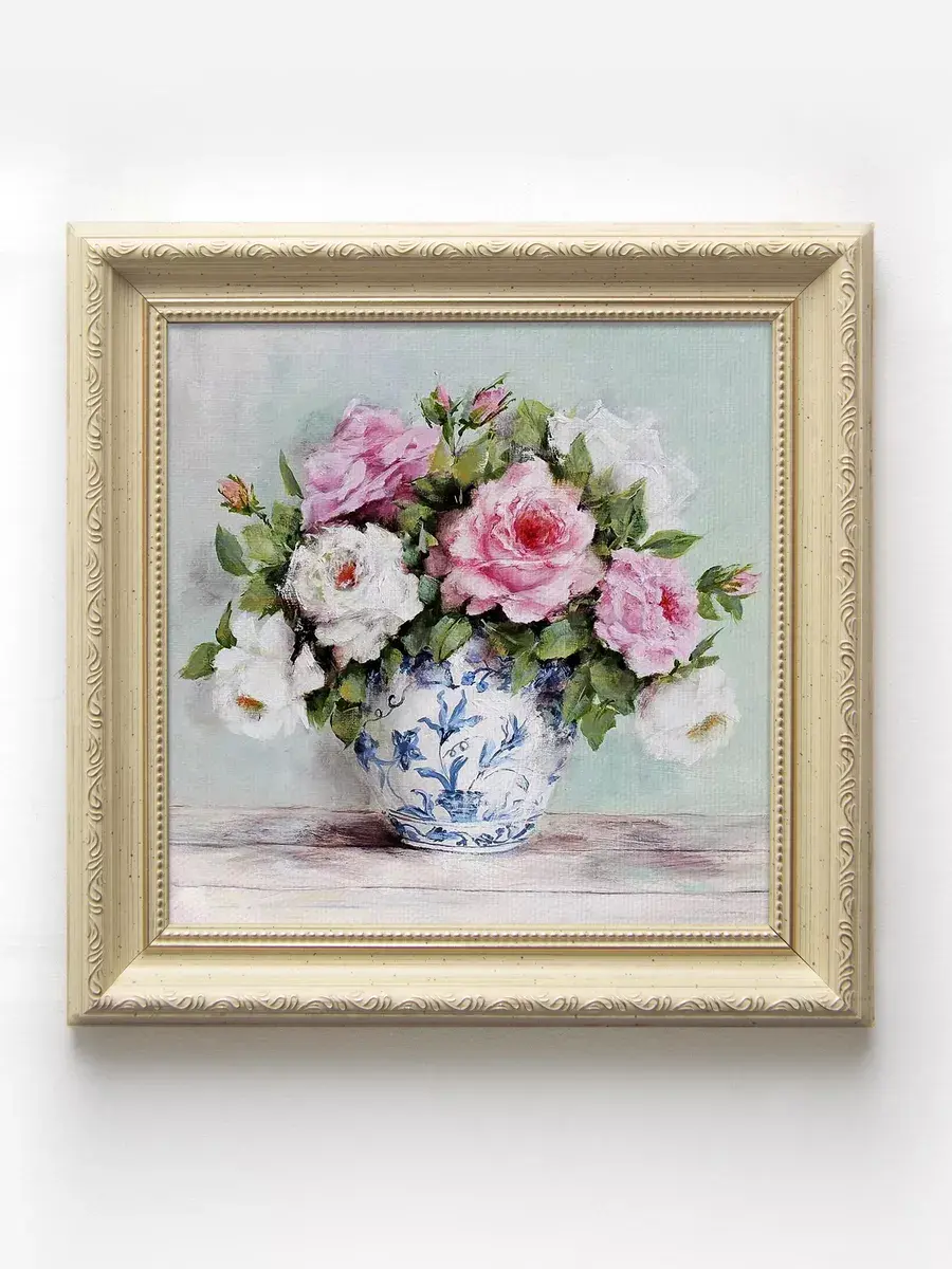 Картина напечатана на натуральном холсте, покрыта лаком. Для защиты от провисания холст наклеен на хдф. Рама из полиуретана классическая теплая бежевая полуматовая под дерево. Картины небольшого размера 25*25 см по раме, холст 20*20, см, для создания коллекций. Упакованы в коробку, крепление для стены в комплекте.