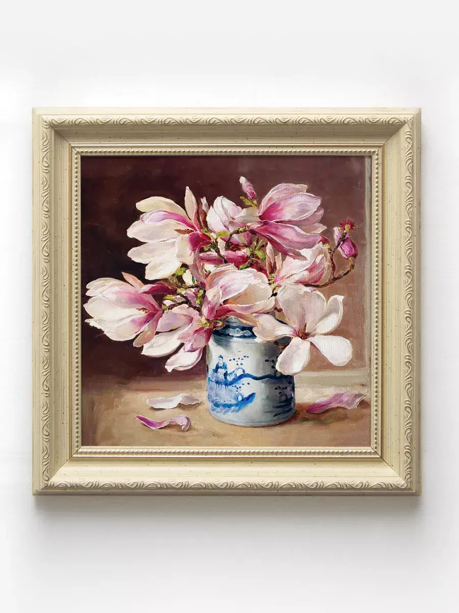 Картина напечатана на натуральном холсте, покрыта лаком. Для защиты от провисания холст наклеен на хдф. Рама из полиуретана классическая теплая бежевая полуматовая под дерево. Картины небольшого размера 25*25 см по раме, холст 20*20, см, для создания коллекций. Упакованы в коробку, крепление для стены в комплекте.