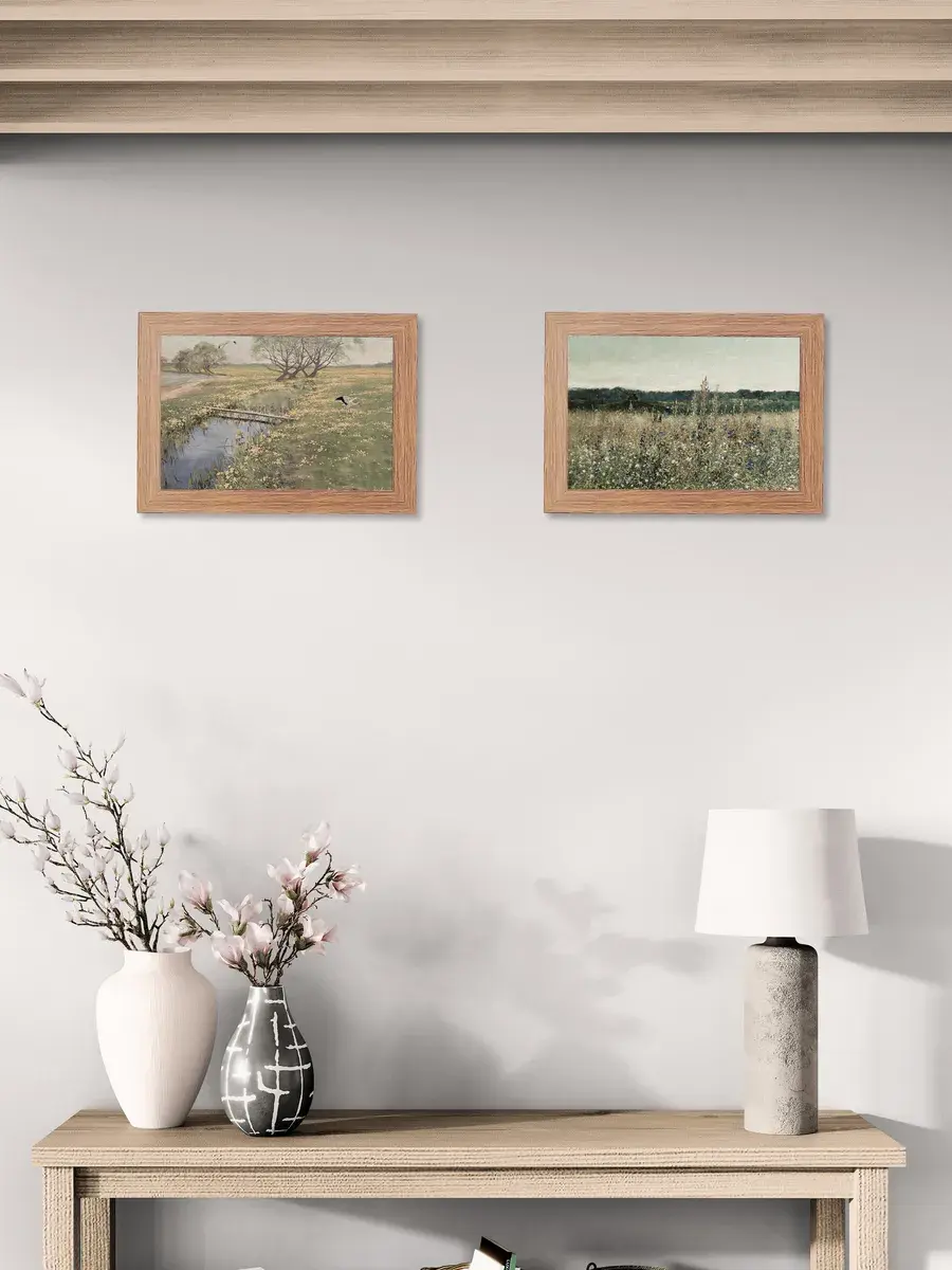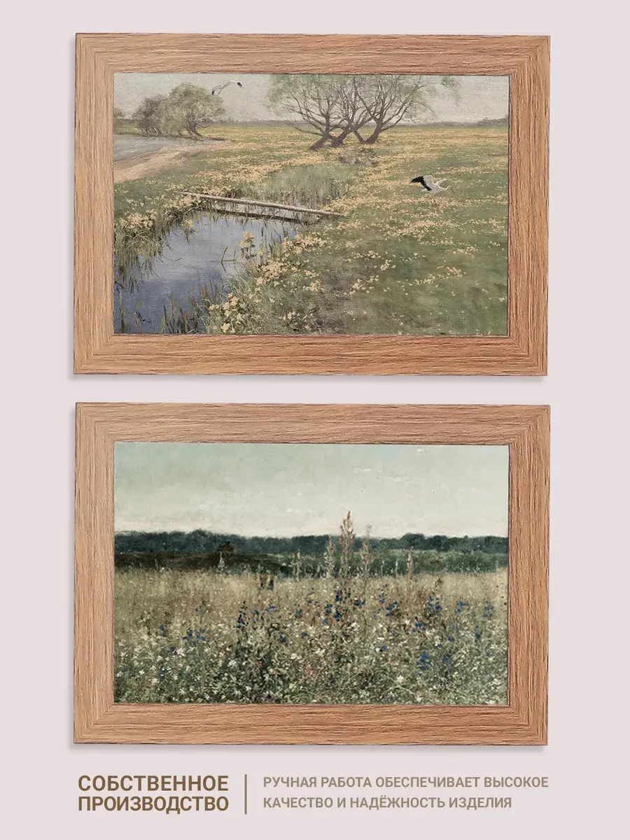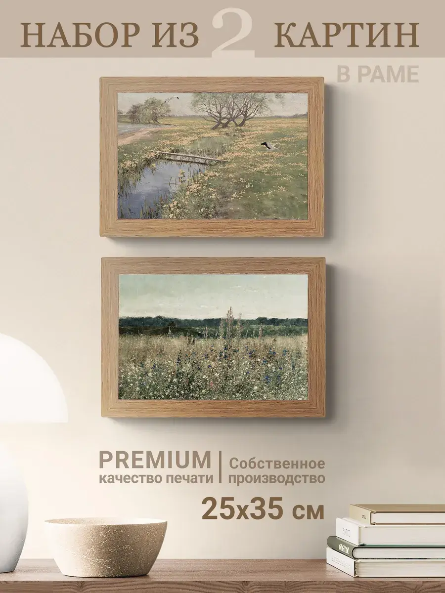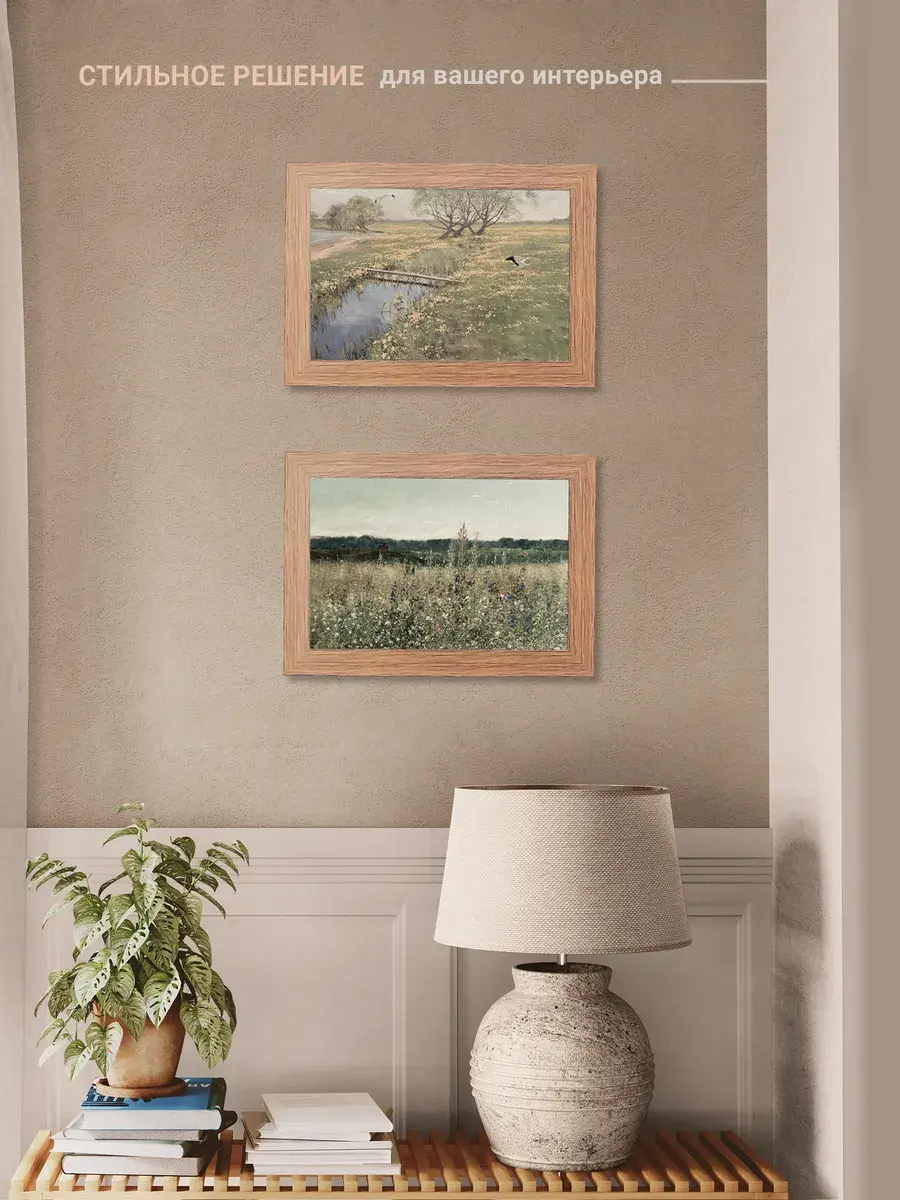 Набор из двух картин на натуральном холсте. Размер каждой картины 25*35 см. Настенный декор в раме, это современный способ украсить стены вашего дома и расслабить Вас после работы, атмосфера релакса, уюта и тепла. Картины со спокойными умиротворяющими пейзажами. Картина напечатана в высоком разрешении на натуральном холсте, покрыта матовым лаком, размер холста 20*30 см, размер с рамой 25*35 см. В комплекте шуруп с дюбелем и зубчатый крепеж на раме. Рама из полиуретана спокойного светло-коричневого цвета под дерево. Картины предназначены для создания коллекций в гостиной, детской, прихожей, спальне или кухне. Украшение для дома и дачи, подарок в дом друзьям и коллегам. Картины упакованы в пакет и коробку.
