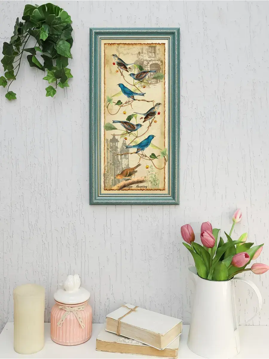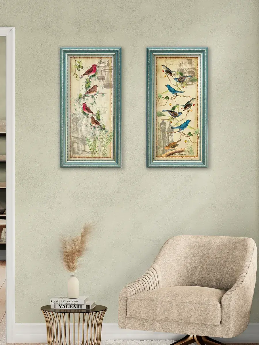 Напечатанная на натуральном хлопковом холсте и оформленная в элегантную рамку с бирюзового цвета с позолотой, эта картина добавляет нотку артистизма как в современный, так и в классический интерьер. Символ свободы, изображенный на полотне — птицы — делает её особенно привлекательной для любителей природы. Кроме того, она станет прекрасным элементом в офисе, создавая атмосферу уюта и комфорта.