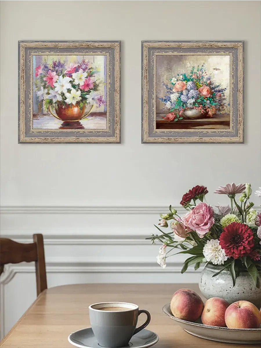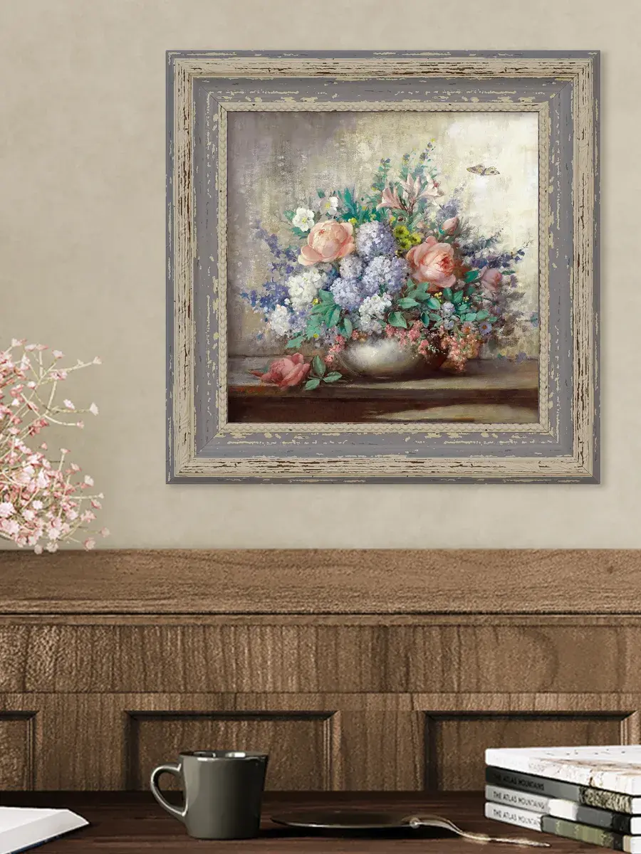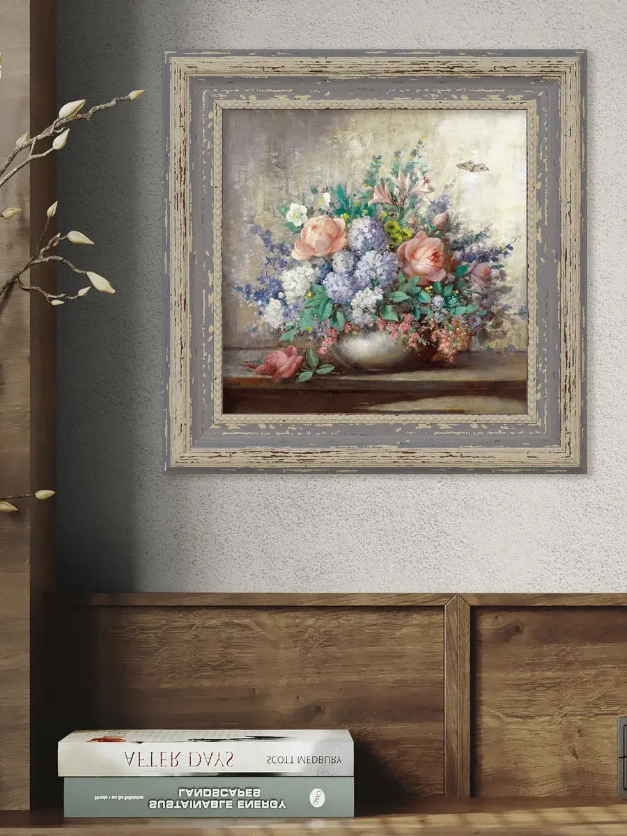 Картина напечатана на натуральном холсте, покрыта лаком. Основа из ХДФ, что исключает провисание холста. Багетная рама по периметру картины. Размер картины в раме 26*26 см. Разнообразие сюжетов для создания домашних коллекций. Рама с эффектом старины лавандового цвета.