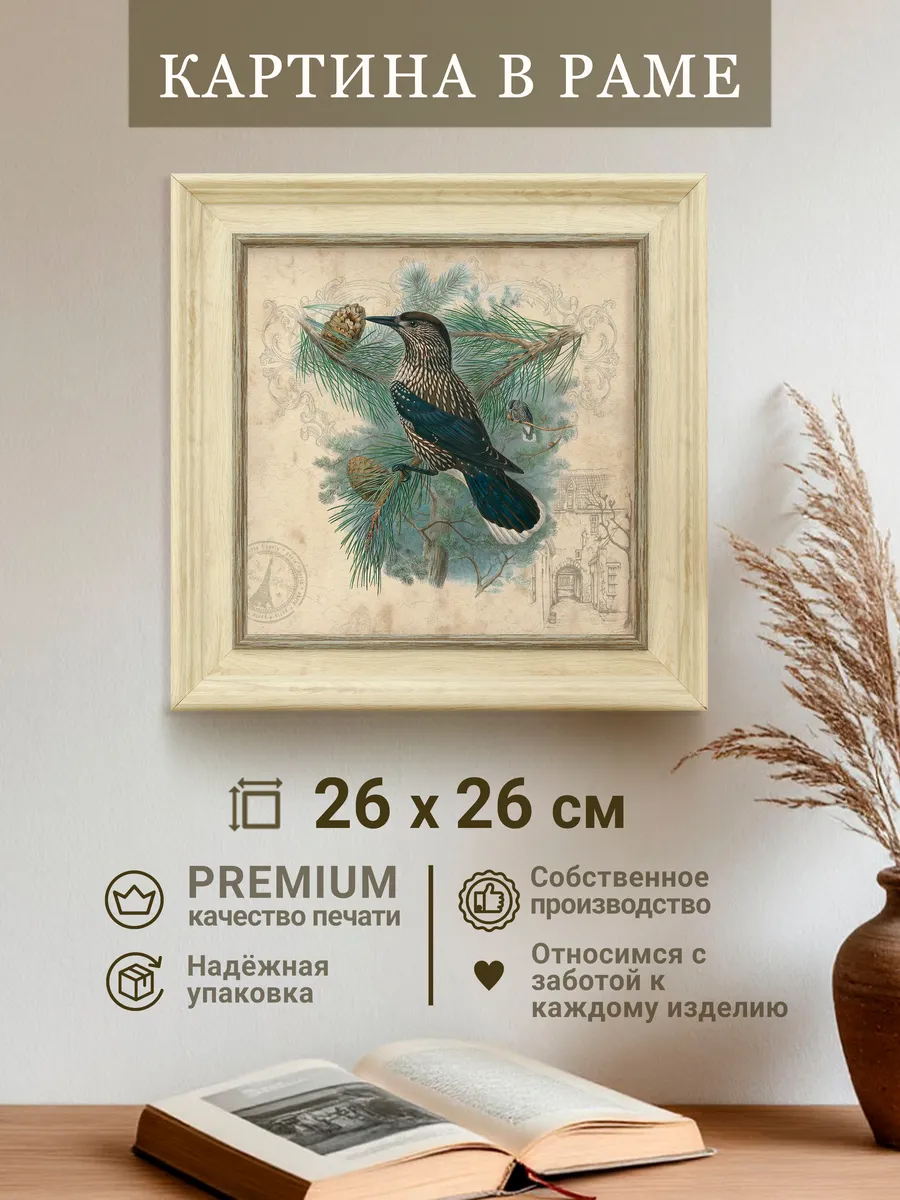 Картина в раме 26×26 см с птицей – изящный акцент для уютного интерьера