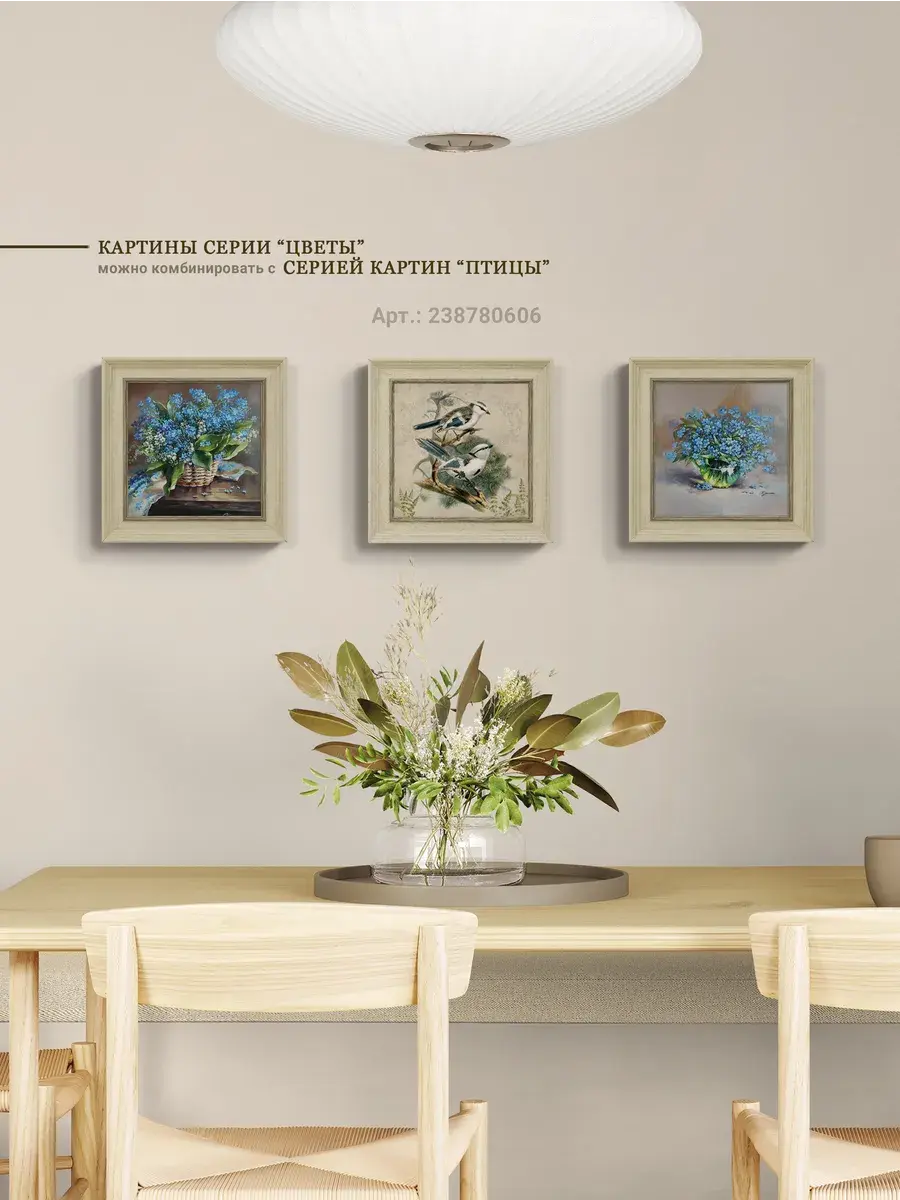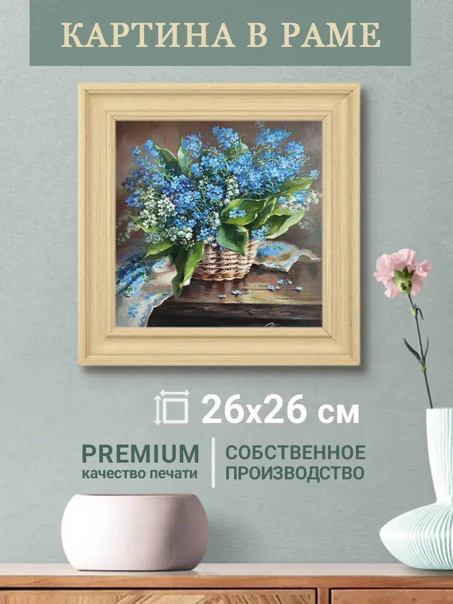 ВНИМАНИЕ! В этой серии изменился багет. Новые фото! Удивительно-красивая картина "Незабудки" в пастельных тонах для создания коллекции в классическом стиле. Украшение для стен дома, оформления кабинета на работе, для создания уютной атмосферы на даче. Картины в светлой бежевой лаконичной раме подойдет для оформления стен в кафе и ресторане. Картина напечатана на натуральном холсте в галерейном качестве, покрыта лаком. Для защиты от провисания холст наклеен на хдф. Рама широкая из полиуретана, матовая по дерево. Размера холст 20*20 см. Ширина рамы 3,5 см. Картина - прекрасный подарок на день рождения, новоселье и просто так для себя. Картина настенная готовая в раме. Крепление для стены в комплекте.