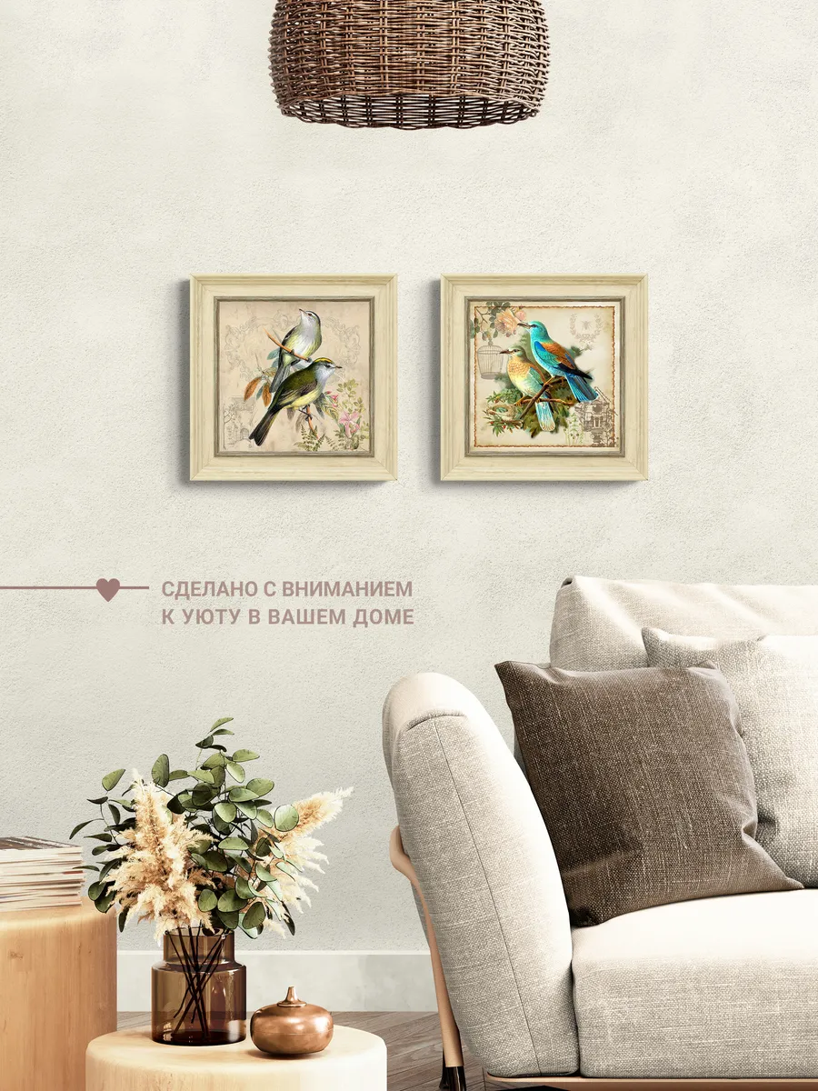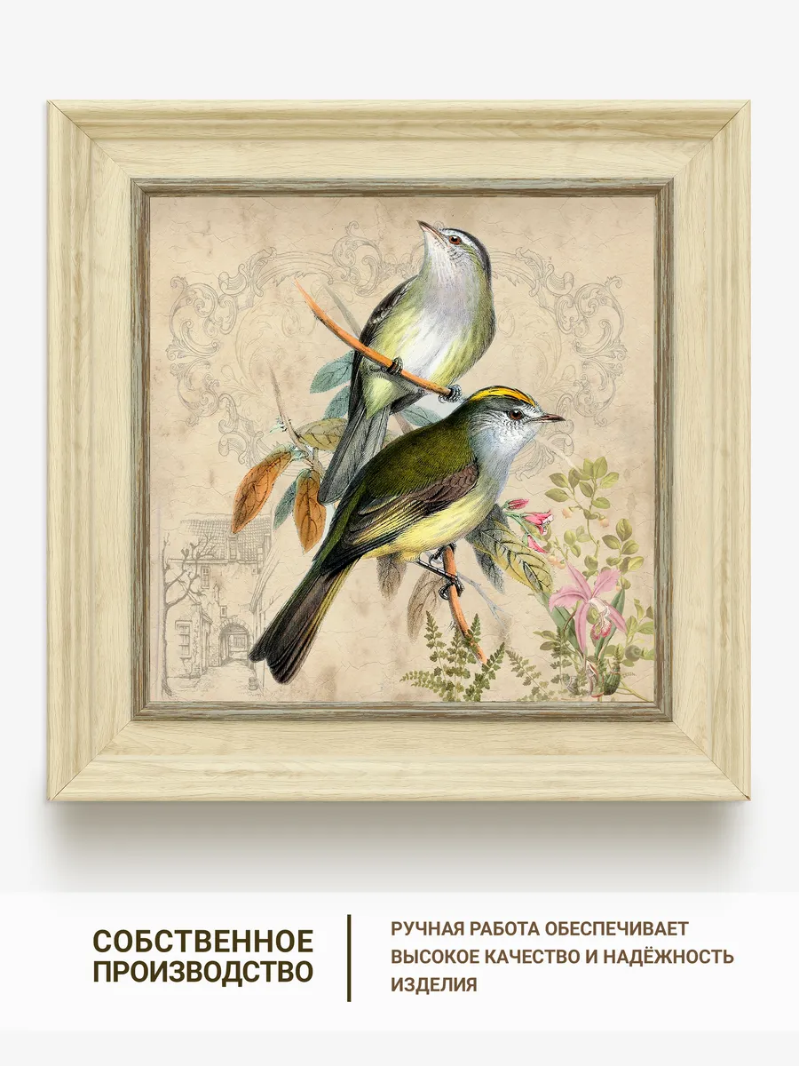 Картина в раме 26×26 см с птицей – изящный акцент для уютного интерьера