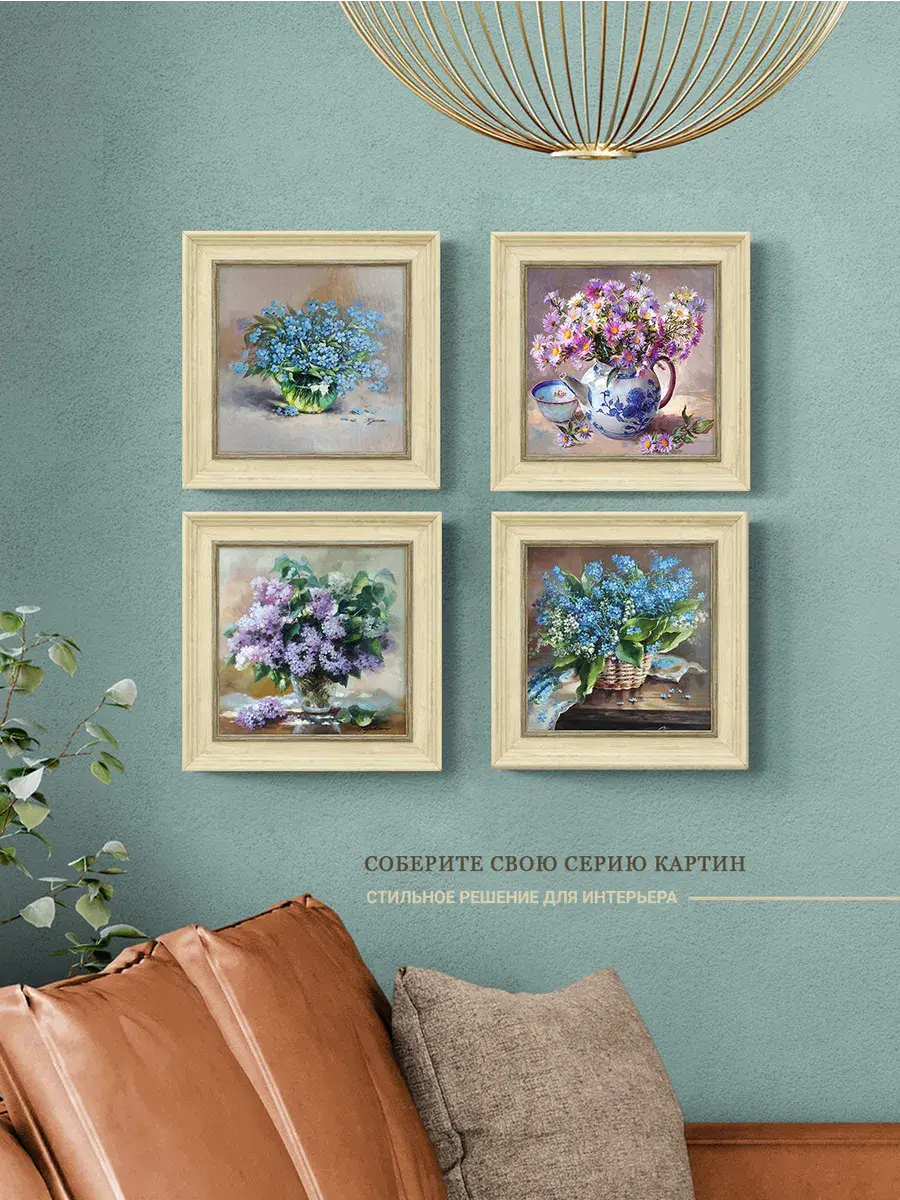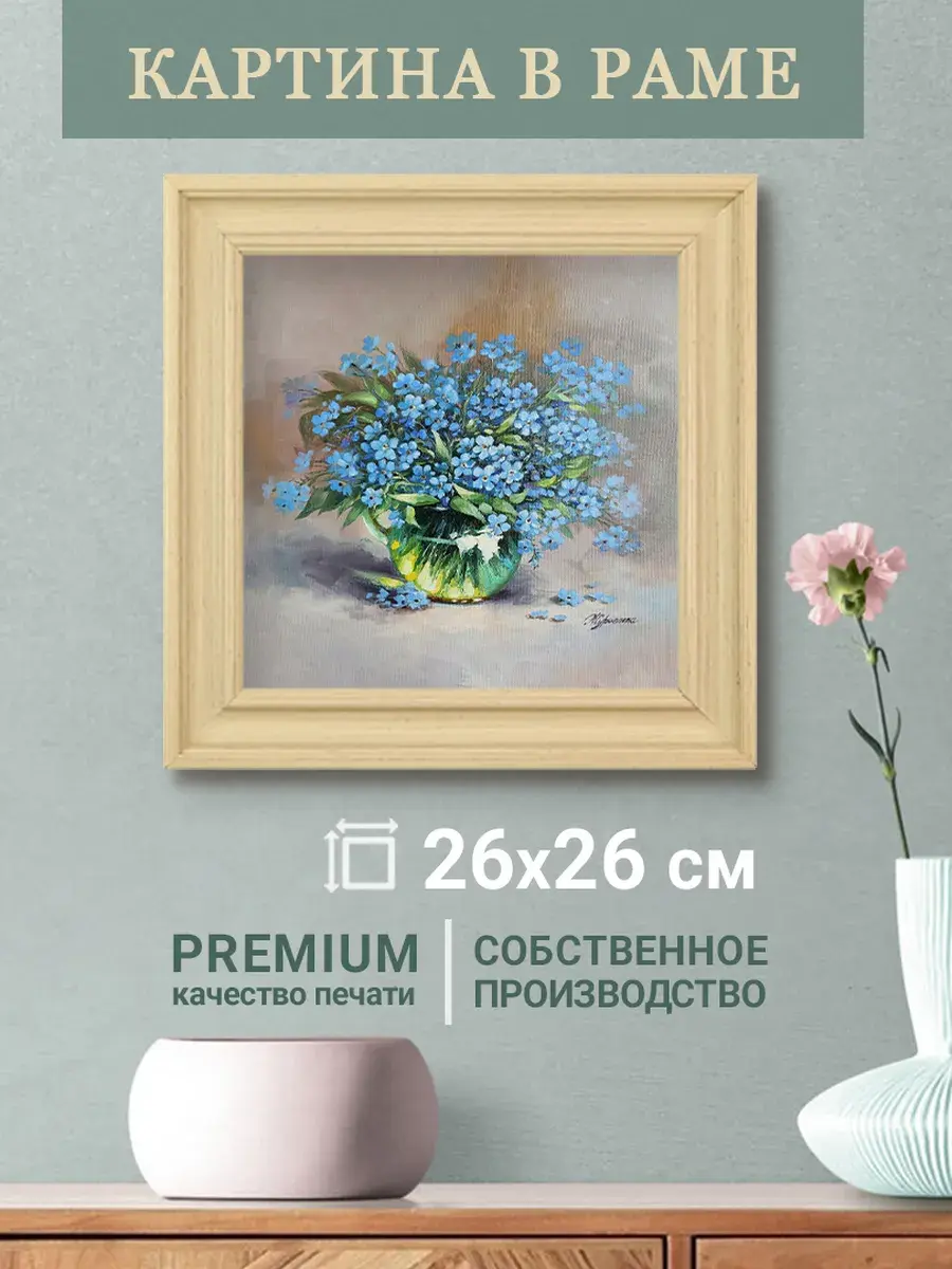ВНИМАНИЕ! В этой серии изменился багет. Новые фото будут в ближайшее время! Удивительно-красивая картина "Незабудки" в пастельных тонах для создания коллекции в классическом стиле. Украшение для стен дома, оформления кабинета на работе, для создания уютной атмосферы на даче. Картины в светлой бежевой лаконичной раме подойдет для оформления стен в кафе и ресторане. Картина напечатана на натуральном холсте в галерейном качестве, покрыта лаком. Для защиты от провисания холст наклеен на хдф. Рама широкая из полиуретана, матовая по дерево. Размера холст 20*20 см. Ширина рамы 3,5 см. Картина - прекрасный подарок на день рождения, новоселье и просто так для себя. Картина настенная готовая в раме. Крепление для стены в комплекте.