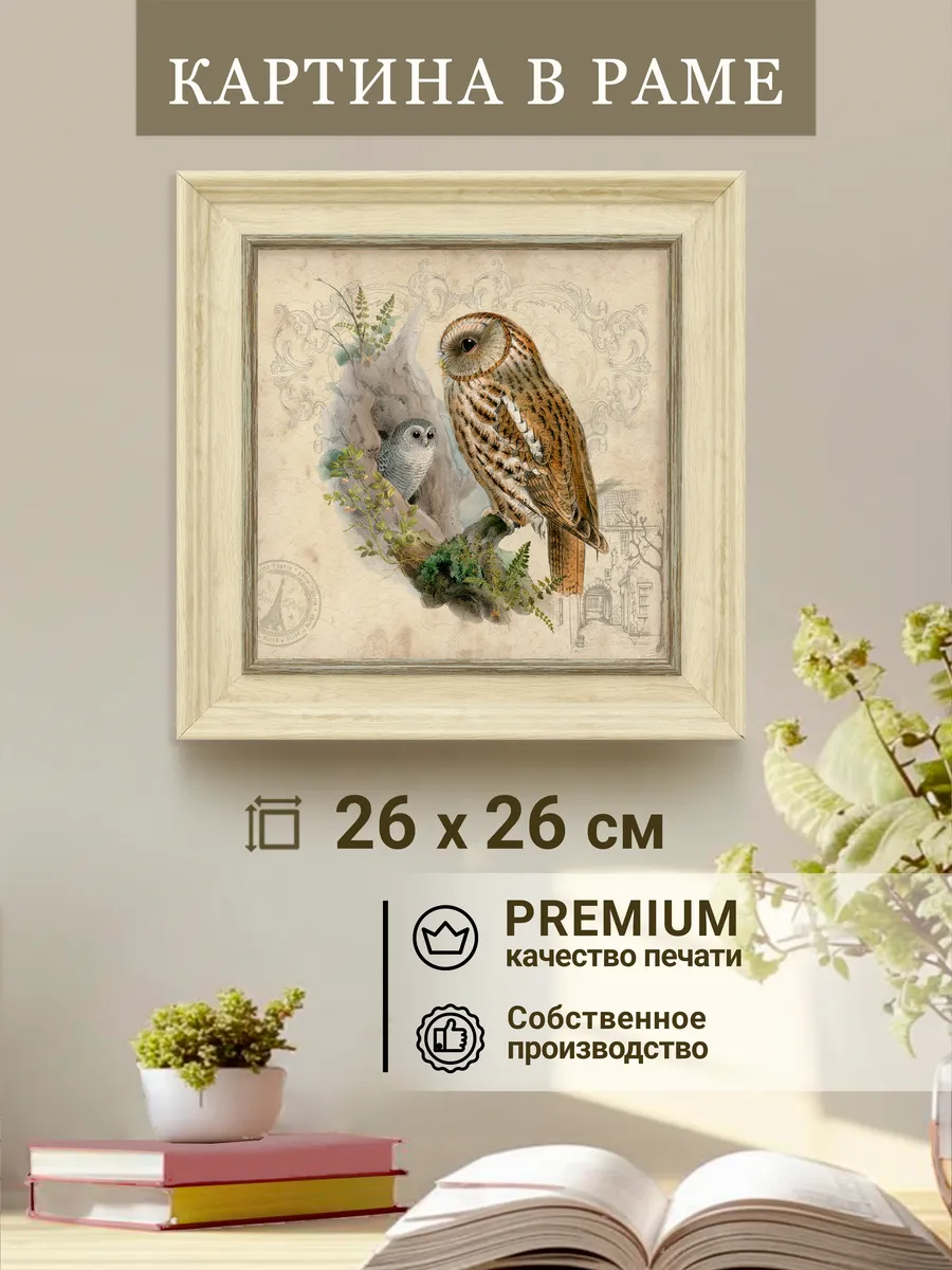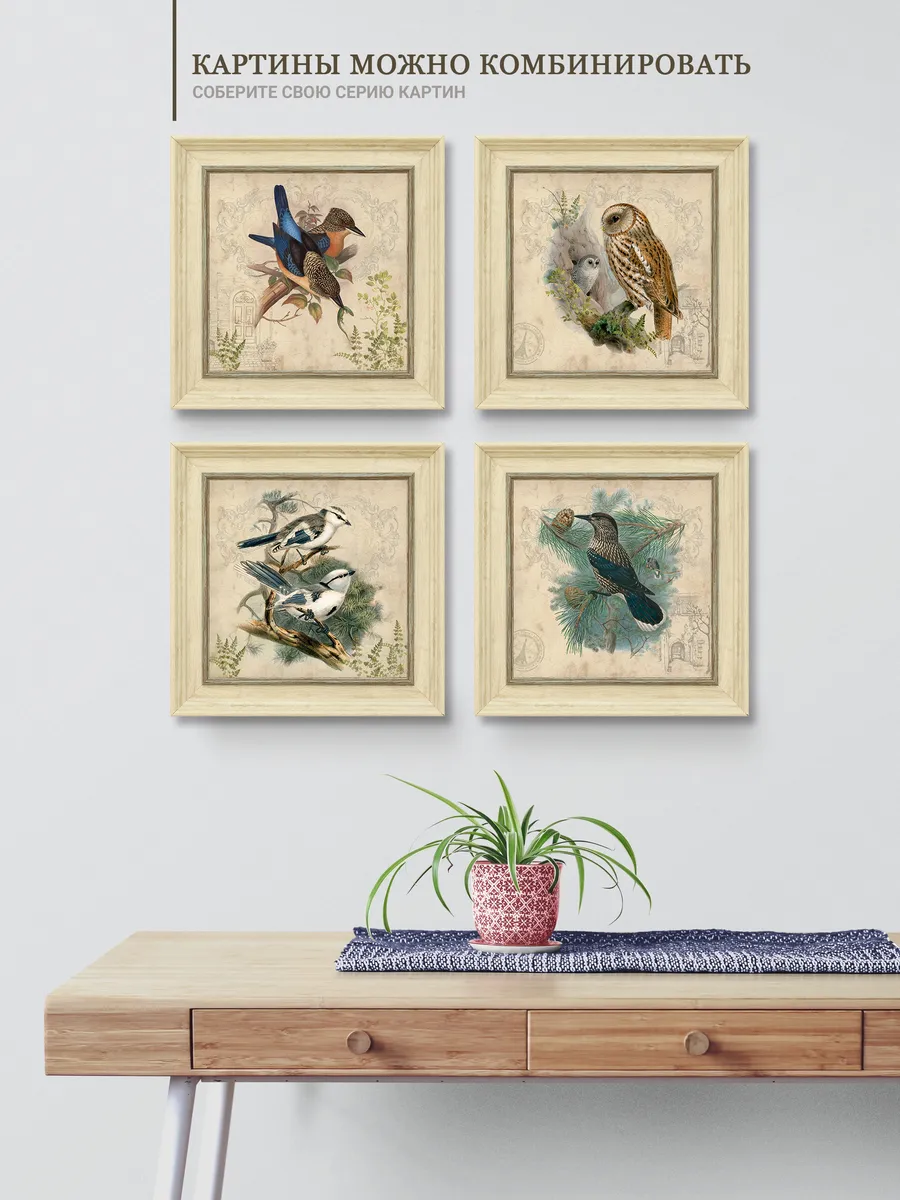 Картина в раме 26×26 см с птицей – изящный акцент для уютного интерьера