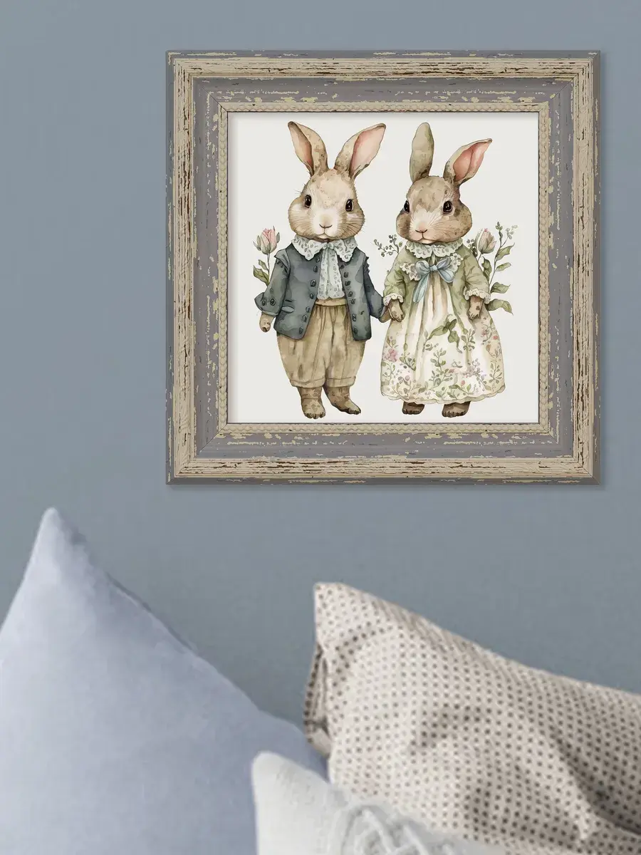 Картина напечатана на натуральном холсте, покрыта лаком. Основа из ХДФ, что исключает провисание холста. Багетная рама по периметру картины. Размер картины в раме 26*26 см. Разнообразие сюжетов для создания домашних коллекций. Рама с эффектом старины лавандового цвета.