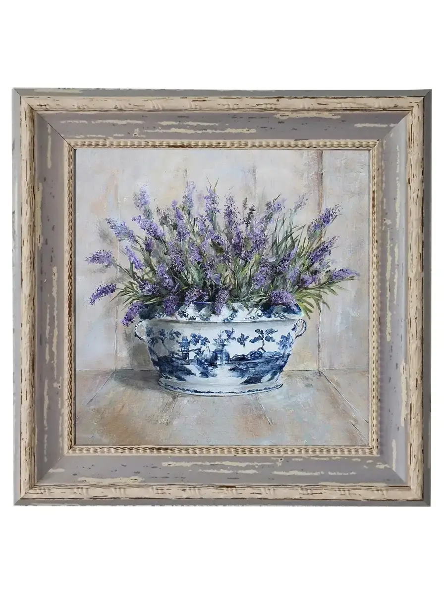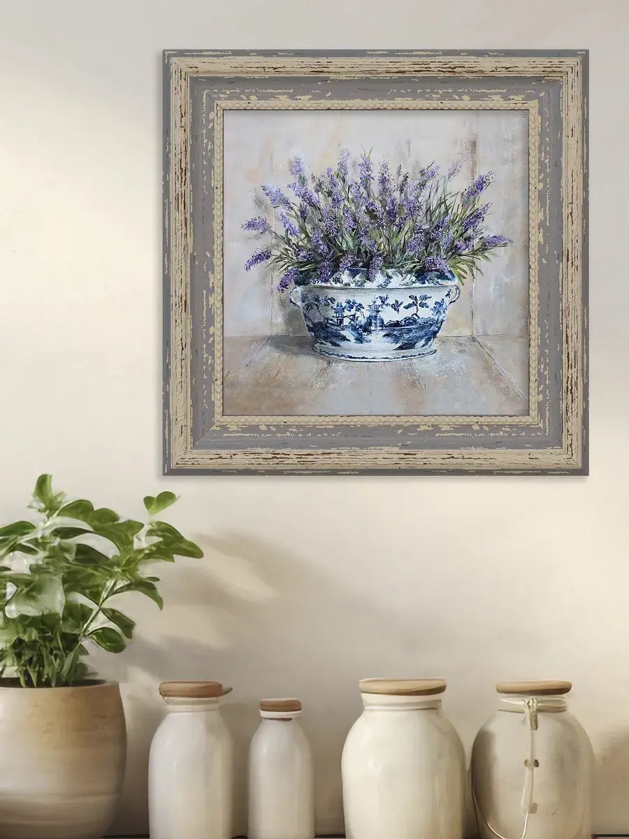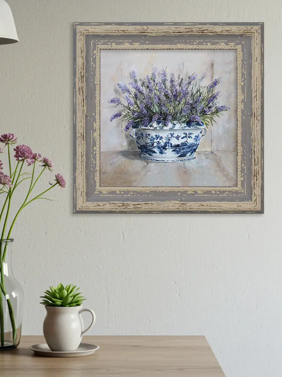 Картина напечатана на натуральном холсте, покрыта лаком. Основа из ХДФ, что исключает провисание холста. Багетная рама по периметру картины. Размер картины в раме 26*26 см. Разнообразие сюжетов для создания домашних коллекций. Рама с эффектом старины лавандового цвета.