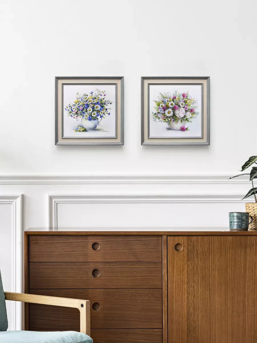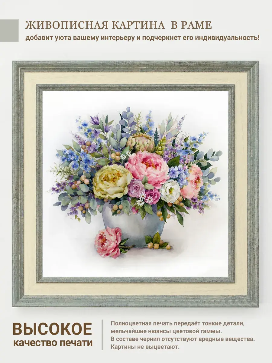 Нежные цветы в пастельных тонах - что может быть прекраснее для создания весеннего романтического настроения в доме. Репродукции картин замечательной российской художницы Вавилиной Елены Георгиевны. Коллекция картин для украшения стен в спальне или гостиной. Комбинируя несколько картин в одинаковом размере, Вы создадите настенную композицию. Прекрасный символичный подарок. Картины изготовлены в России. Настенный декор в раме, это современный способ украсить стены вашего дома, создать коллекцию ярких необычных картин дизайна Elenadecor. Картина напечатана на натуральном холсте, покрыта лаком. Для защиты от провисания холст наклеен на хдф. Рама из полиуретана светлая матовая. Картины небольшого размера 25*25 см по раме, холст 20*20 см, для создания коллекций. Упакованы в коробку, крепление для стены в комплекте.