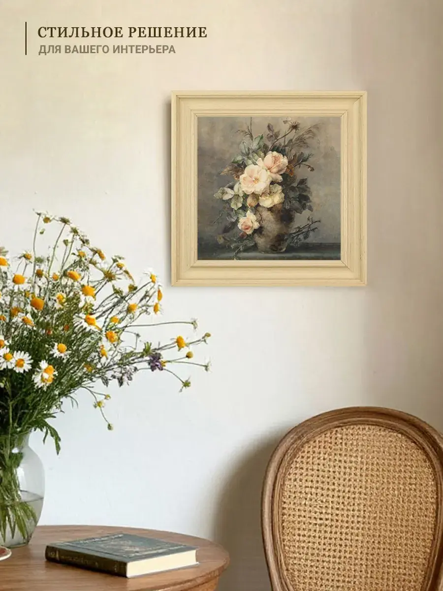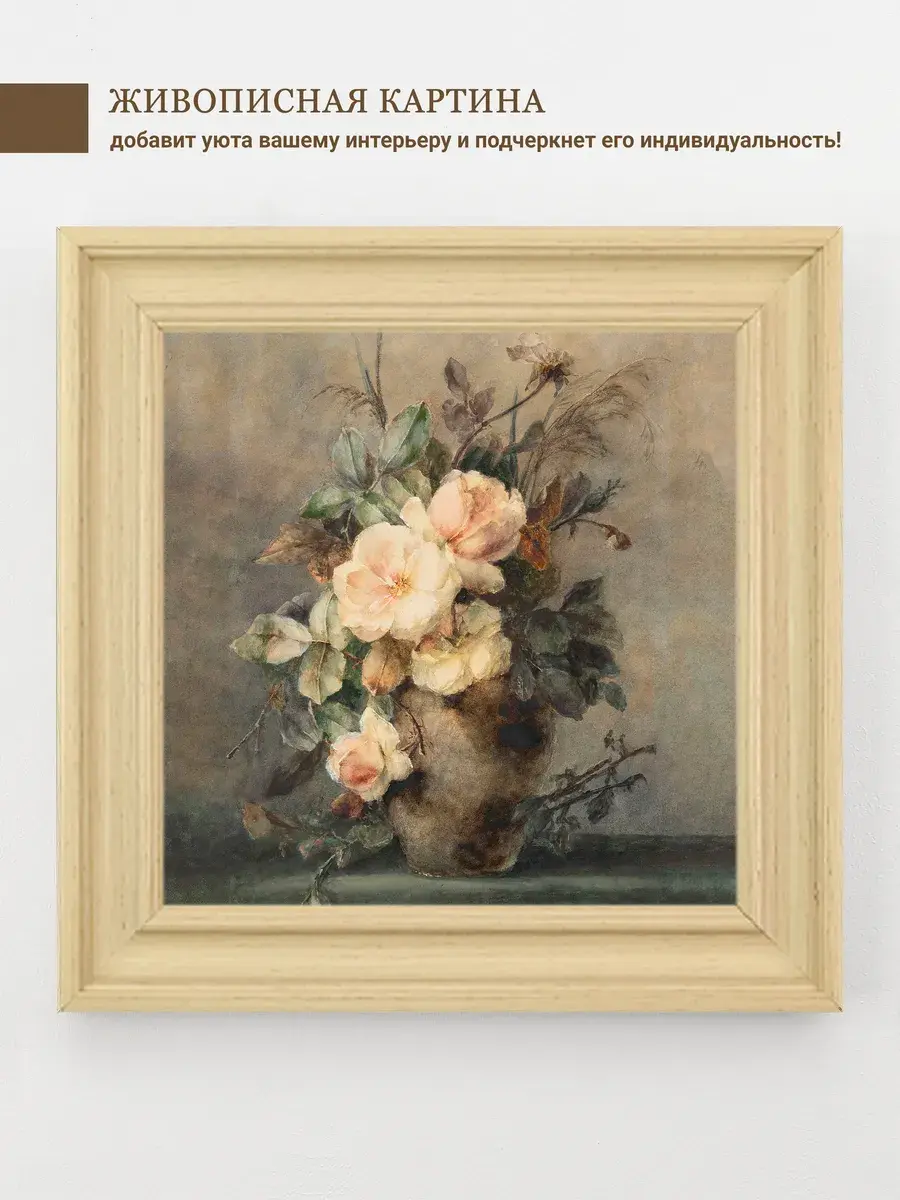 ВНИМАНИЕ! В этой серии изменился багет. Новые фото! Удивительно-красивая картина "Розы" в пастельных тонах для создания коллекции в классическом стиле. Украшение для стен дома, оформления кабинета на работе, для создания уютной атмосферы на даче. Картины в светлой бежевой лаконичной раме подойдет для оформления стен в кафе и ресторане. Картина напечатана на натуральном холсте в галерейном качестве, покрыта лаком. Для защиты от провисания холст наклеен на хдф. Рама широкая из полиуретана, матовая по дерево. Размера холст 20*20 см. Ширина рамы 3,5 см. Картина - прекрасный подарок на день рождения, новоселье и просто так для себя. Картина настенная готовая в раме. Крепление для стены в комплекте.