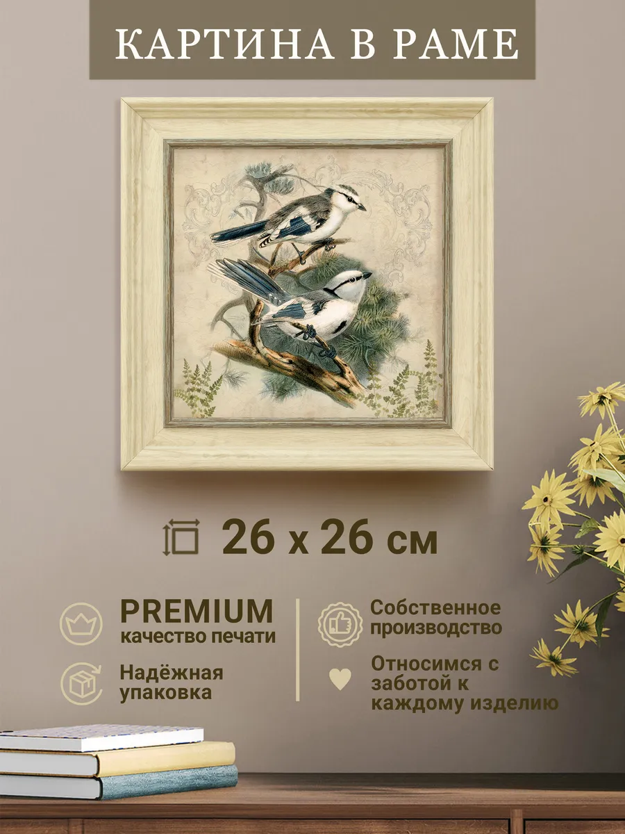 Картина в раме 26×26 см с птицей – изящный акцент для уютного интерьера