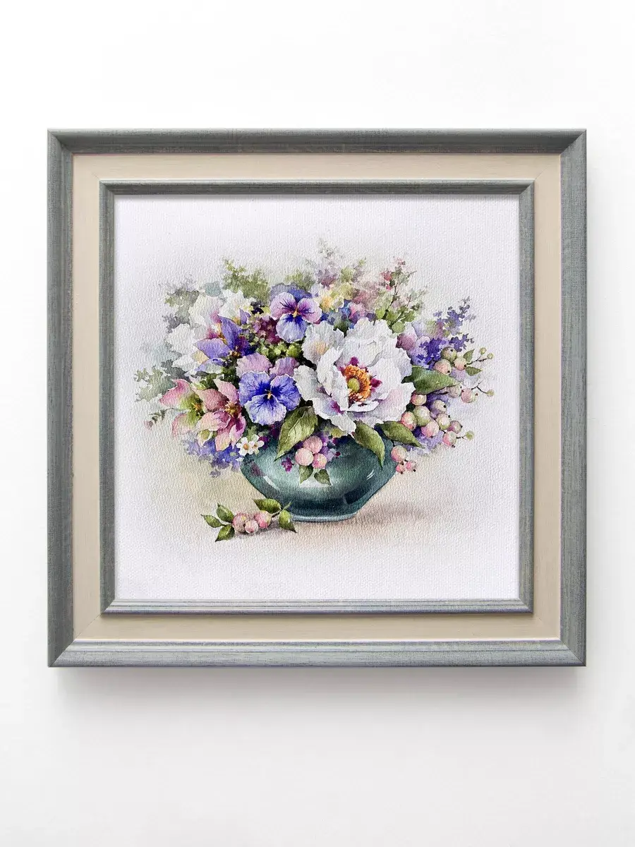 Картина на натуральном холсте "Весенний букет" 26*26 см
