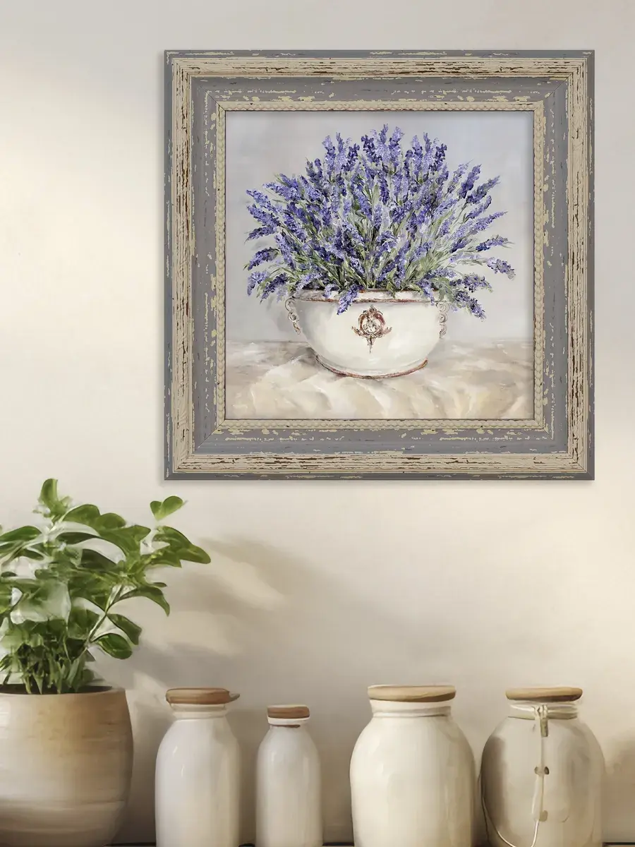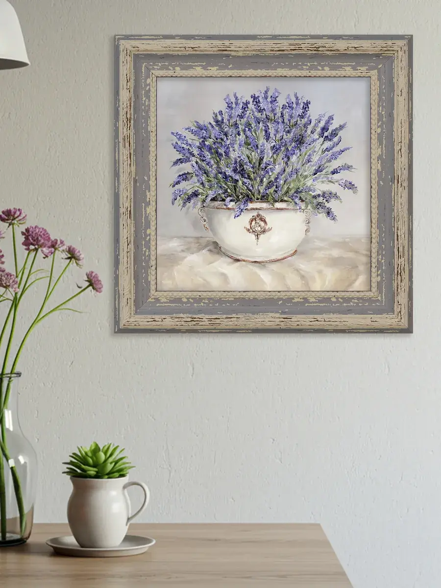 Картина напечатана на натуральном холсте, покрыта лаком. Основа из ХДФ, что исключает провисание холста. Багетная рама по периметру картины. Размер картины в раме 26*26 см. Разнообразие сюжетов для создания домашних коллекций. Рама с эффектом старины лавандового цвета.