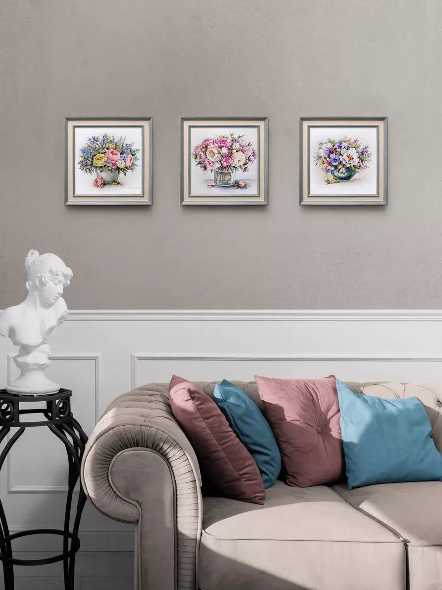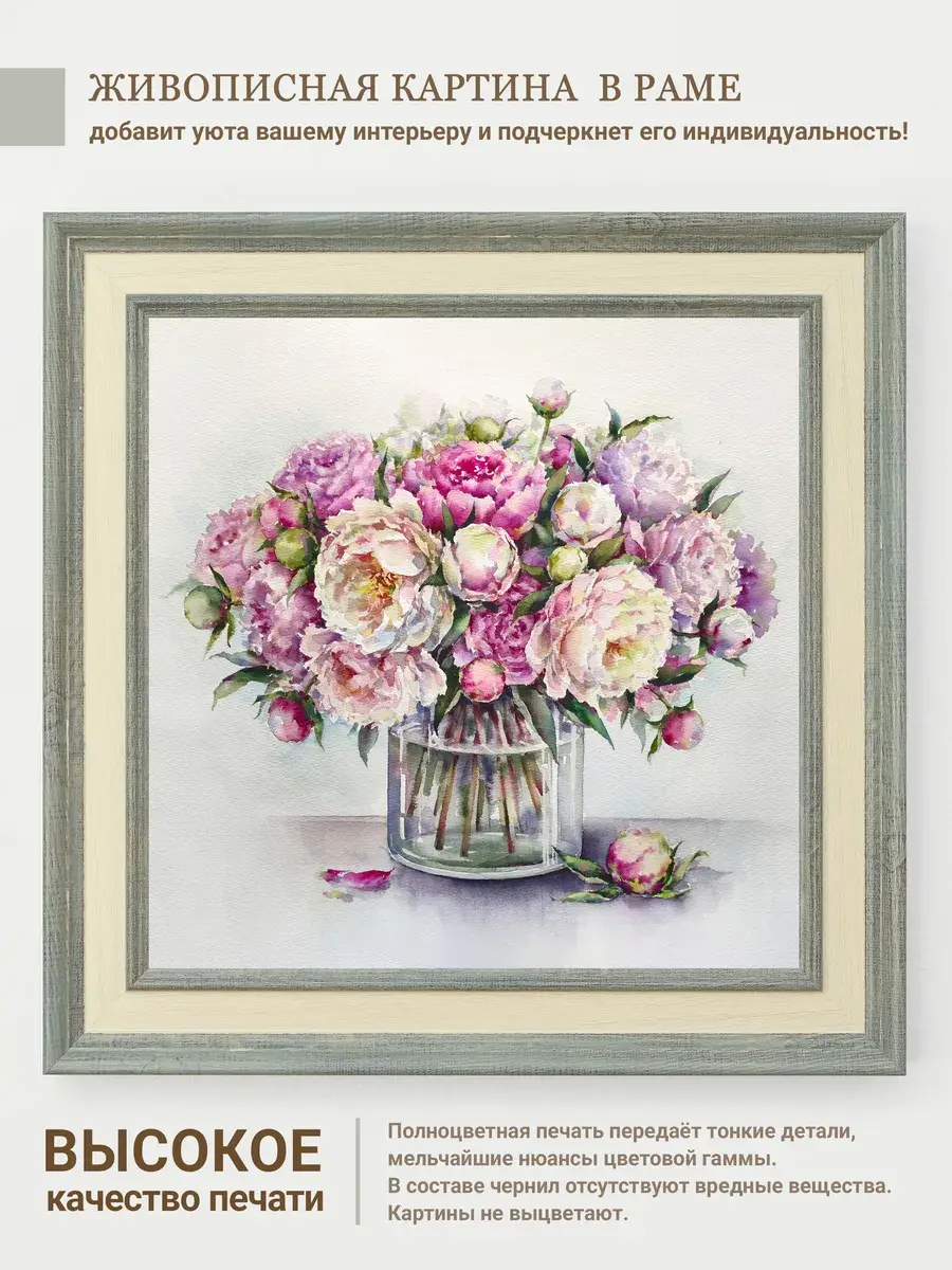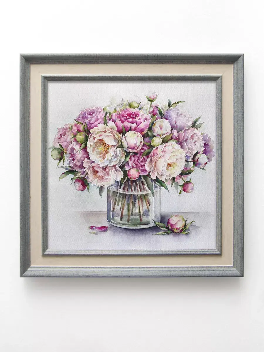 Нежные цветы в пастельных тонах - что может быть прекраснее для создания весеннего романтического настроения в доме. Репродукции картин замечательной российской художницы Вавилиной Елены Георгиевны. Коллекция картин для украшения стен в спальне или гостиной. Комбинируя несколько картин в одинаковом размере, Вы создадите настенную композицию. Прекрасный символичный подарок. Картины изготовлены в России. Настенный декор в раме, это современный способ украсить стены вашего дома, создать коллекцию ярких необычных картин дизайна Elenadecor. Картина напечатана на натуральном холсте, покрыта лаком. Для защиты от провисания холст наклеен на хдф. Рама из полиуретана светлая матовая. Картины небольшого размера 25*25 см по раме, холст 20*20 см, для создания коллекций. Упакованы в коробку, крепление для стены в комплекте.