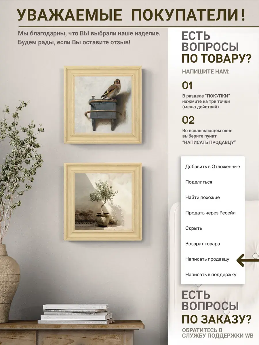 ВНИМАНИЕ! В этой серии изменился багет. Новые фото! Удивительно-красивая картина "Воробей" в пастельных тонах для создания коллекции в классическом стиле. Украшение для стен дома, оформления кабинета на работе, для создания уютной атмосферы на даче. Картины в светлой бежевой лаконичной раме подойдет для оформления стен в кафе и ресторане. Картина напечатана на натуральном холсте в галерейном качестве, покрыта лаком. Для защиты от провисания холст наклеен на хдф. Рама широкая из полиуретана, матовая по дерево. Размера холст 20*20 см. Ширина рамы 3,5 см. Картина - прекрасный подарок на день рождения, новоселье и просто так для себя. Картина настенная готовая в раме. Крепление для стены в комплекте.