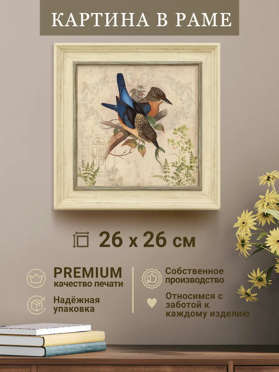 Картина в раме 26×26 см с птицей – изящный акцент для уютного интерьера