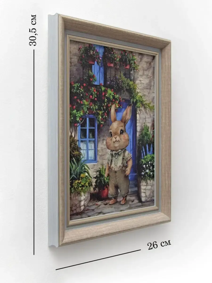 Настенный декор в нежных пастельный тонах с милыми зайчиками в раме под дерево. Эта картина станет стильным акцентом в интерьере. Она идеально подойдет для оформления стен в различных помещениях: от кухни до спальни, от гостиной до прихожей. Настенное панно выполнено на холсте и отличается яркими цветами, что придаст уют и свежесть любому дому или квартире. Декоративное оформление в рамке добавит элегантности и завершенности, делая картину не только предметом декора, но и важной частью атмосферы вашего пространства. Это решение отлично впишется в интерьер детской, или любой комнаты, создавая ощущение счастья и гармонии. Пусть данное предметы искусства придаст вашему дому индивидуальность и изысканный стиль.