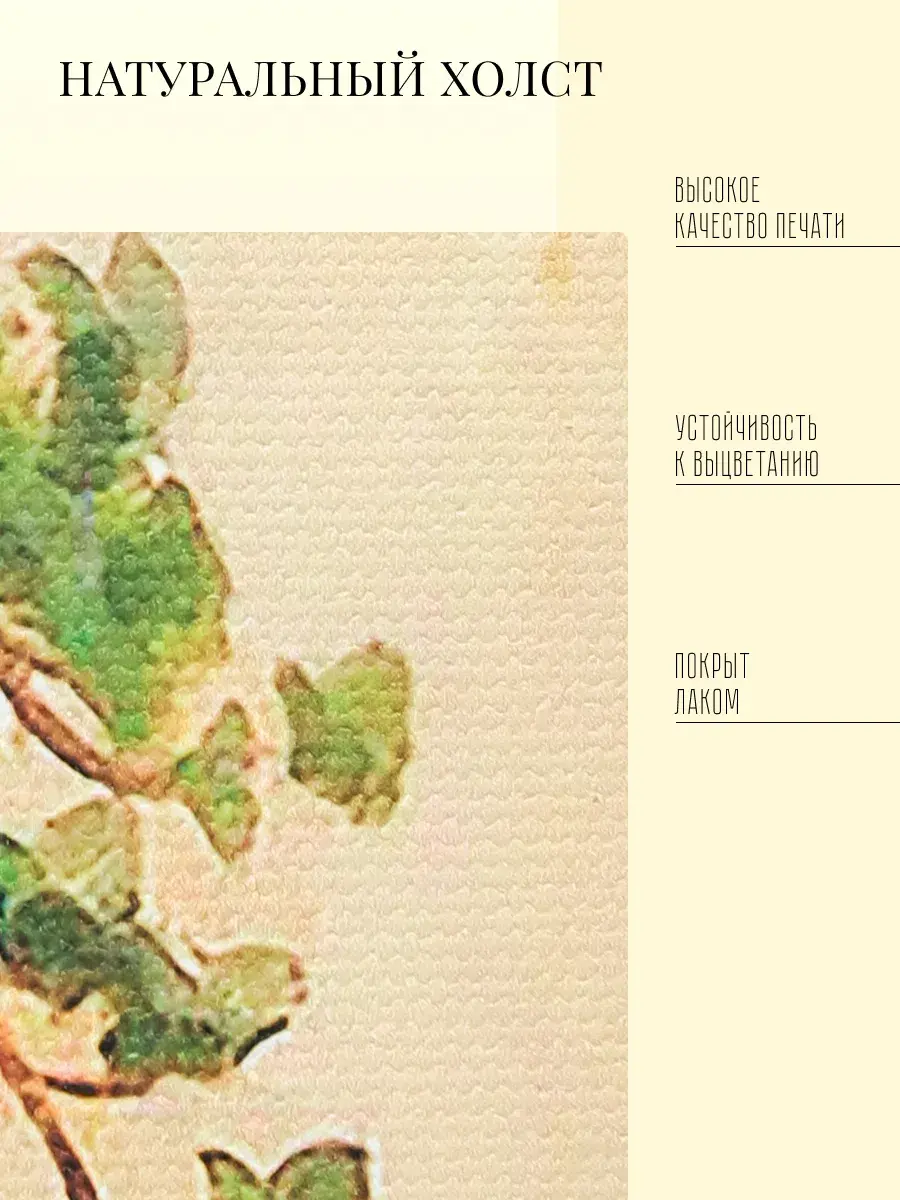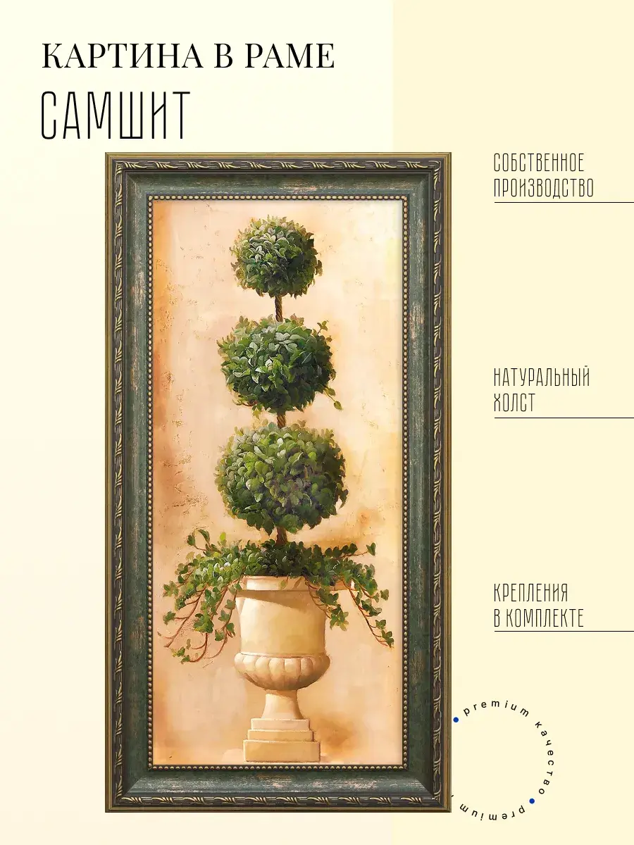 Картина поставляется с креплением, что упрощает ее установку на стену. "Самшит" - это не просто изображение, а настоящий источник вдохновения и хорошего настроения, который будет радовать вас каждый день. Картина прекрасно смотрится как одна, так и в композициями с другими картинами серии.