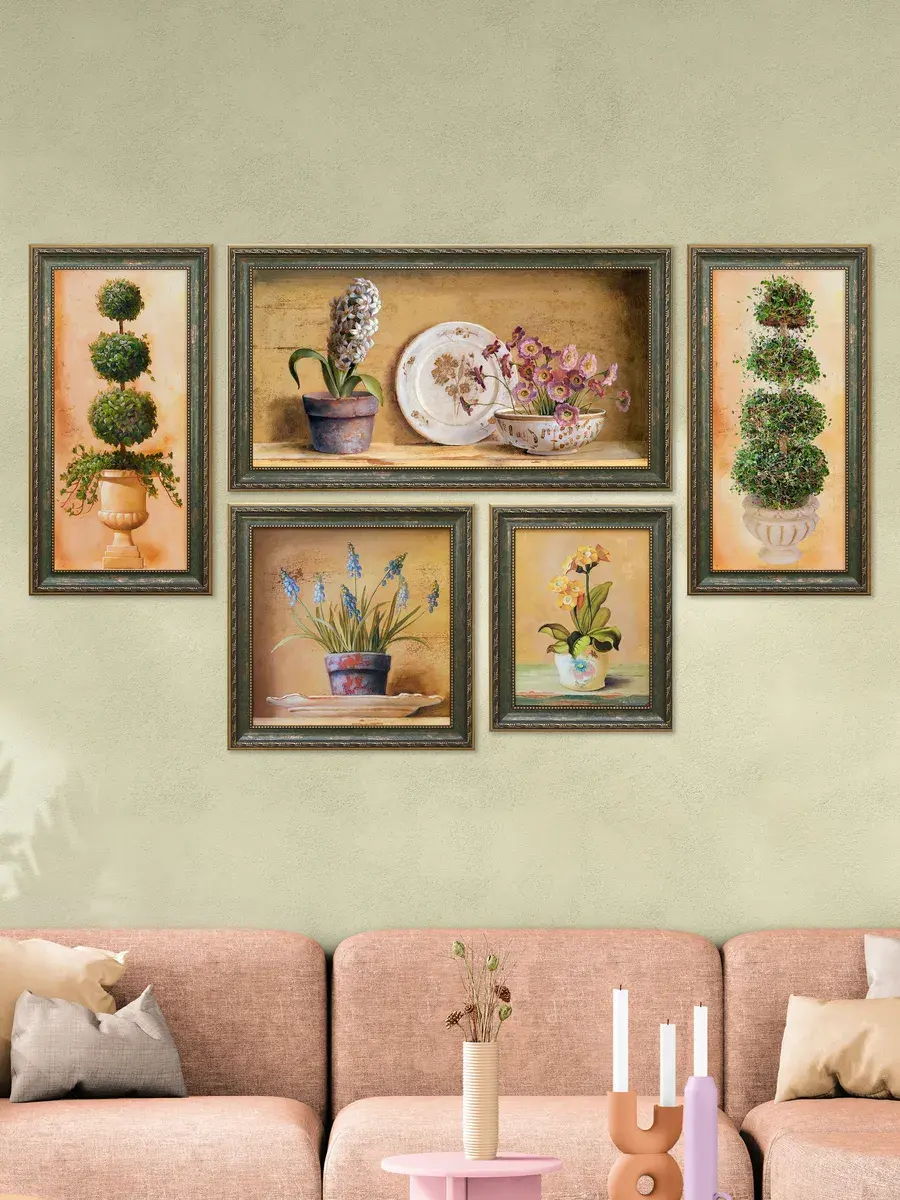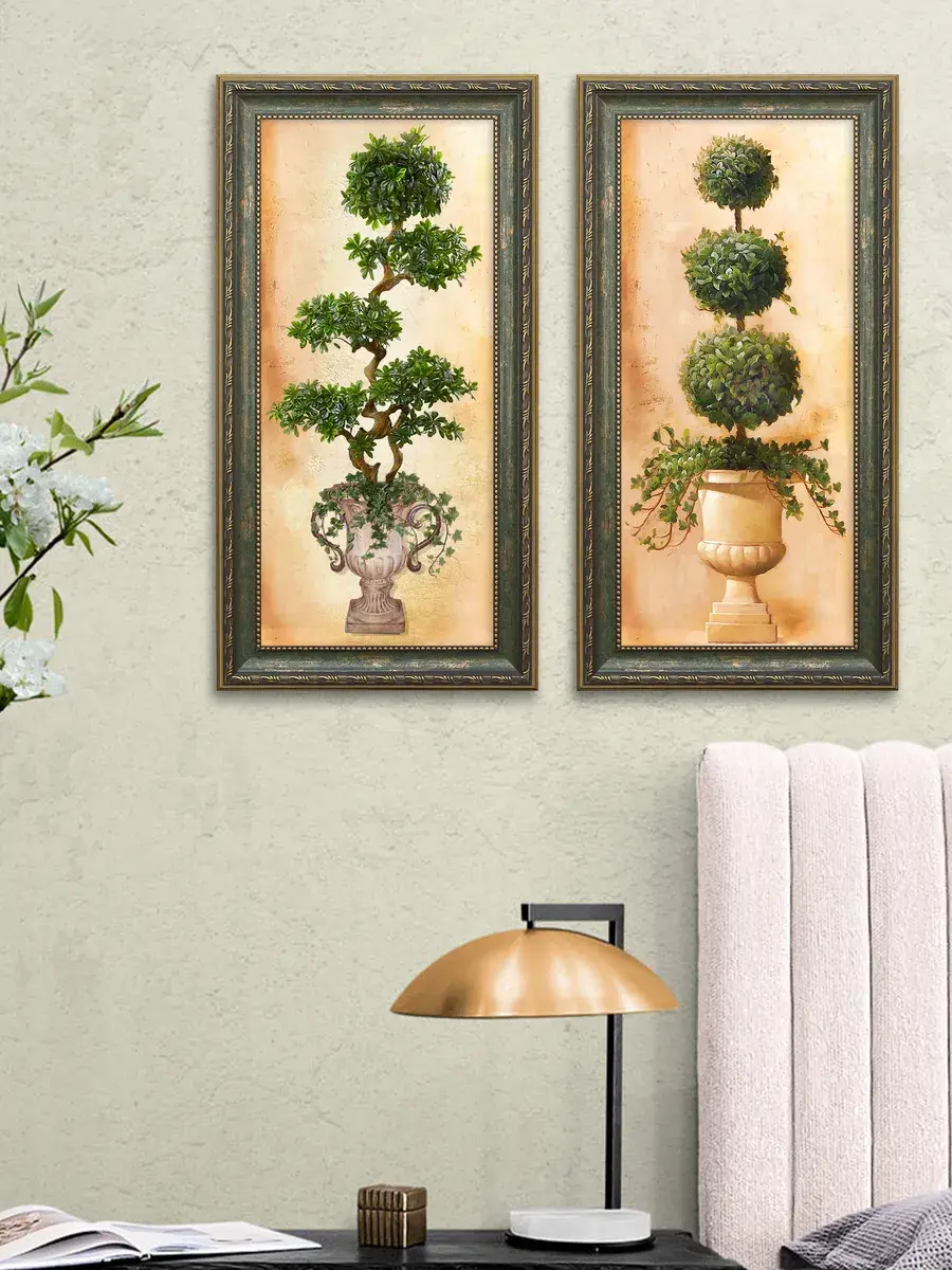Картина на стену "Самшит" от Elenadecor станет настоящим украшением вашего дома, наполняя его атмосферой весенней свежести и уюта. Натуральный холст, на котором мастерски изображены самшиты, создает ощущение глубины и реалистичности. Картина "Самшит" прекрасно впишется в любой интерьер, будь то дом, дача или просто любимая комната. Благородная багетная рама подчеркивает красоту изображения, делая его еще более изысканным.