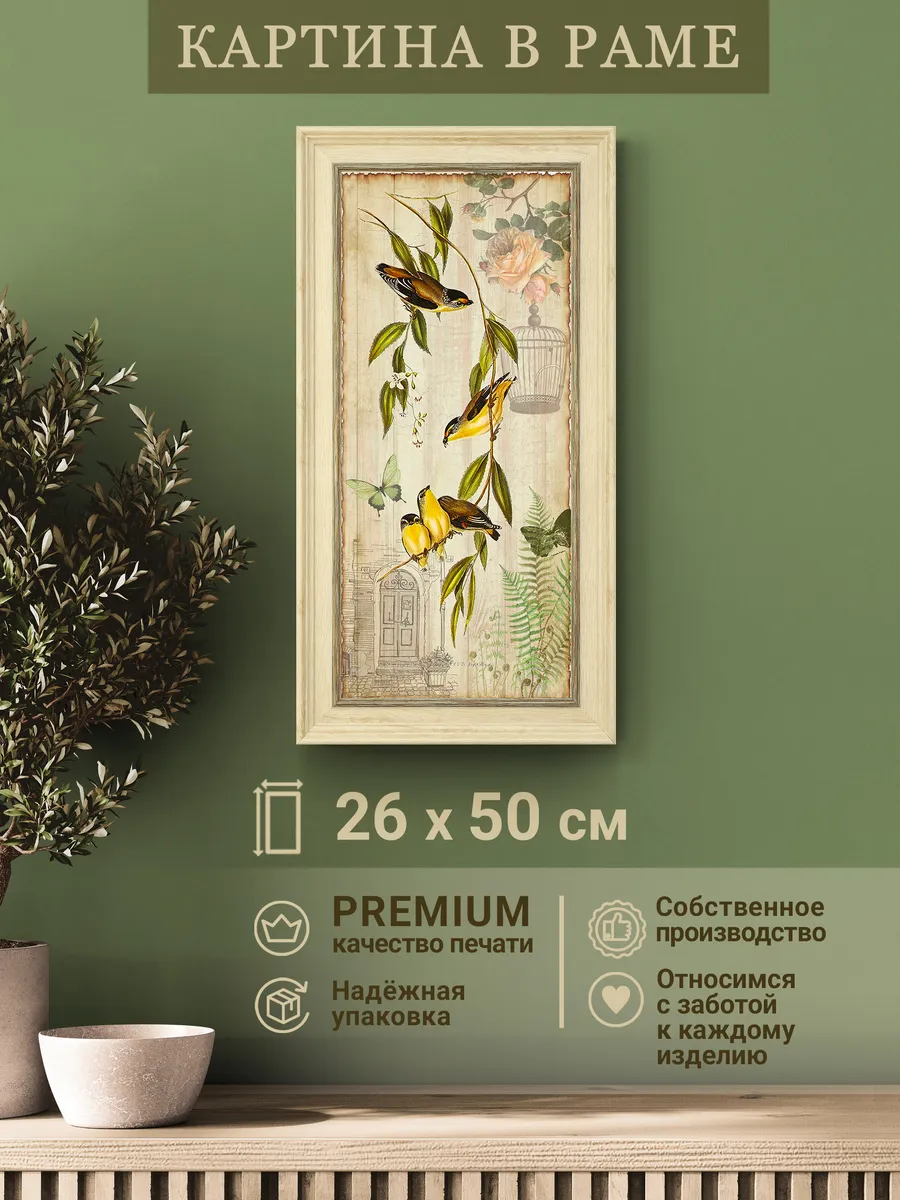Картина в раме 26×50 см с птицами – интерьерный акцент в классическом стиле