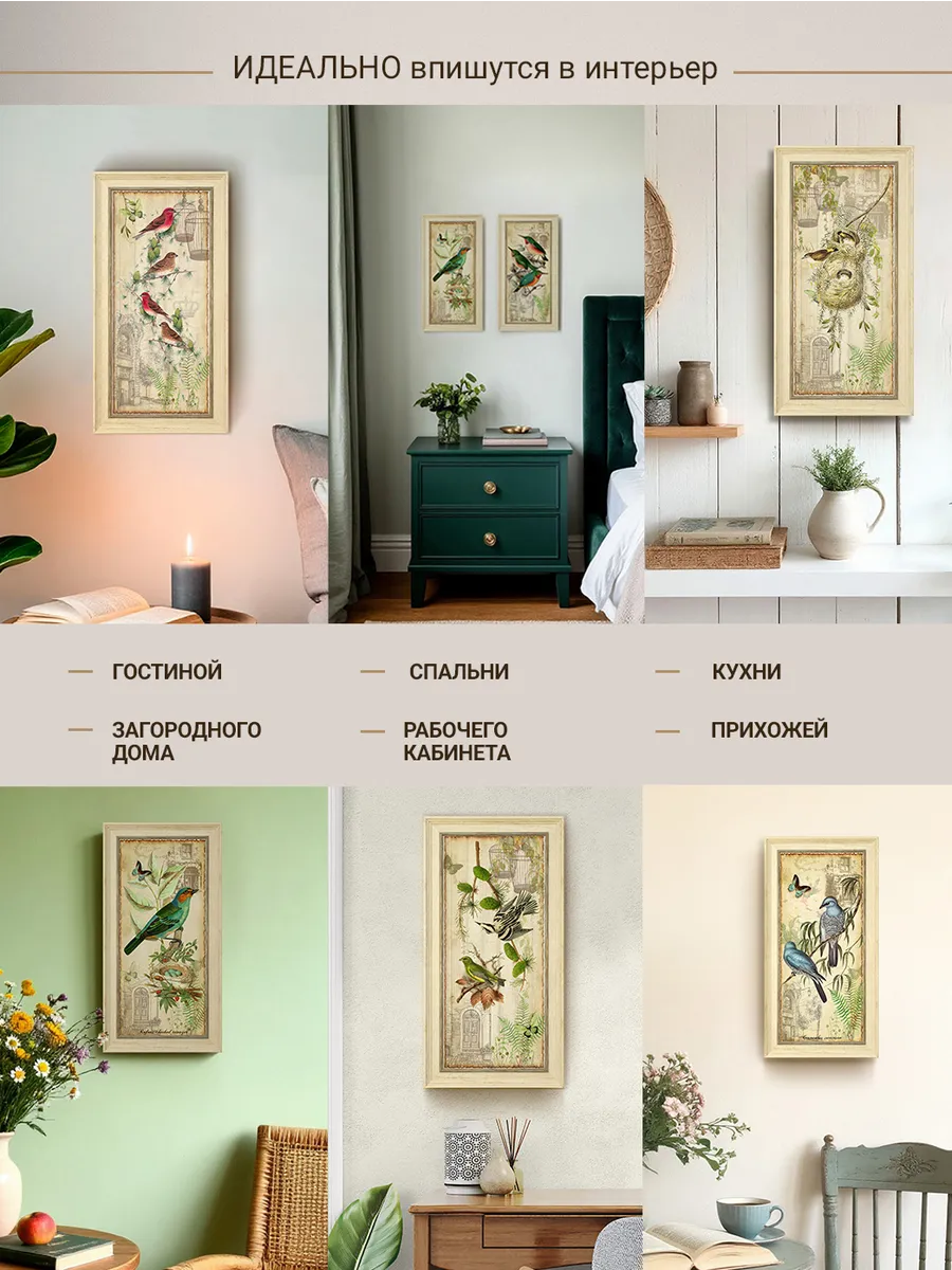 Картина в раме 26×50 см с птицами – интерьерный акцент в классическом стиле