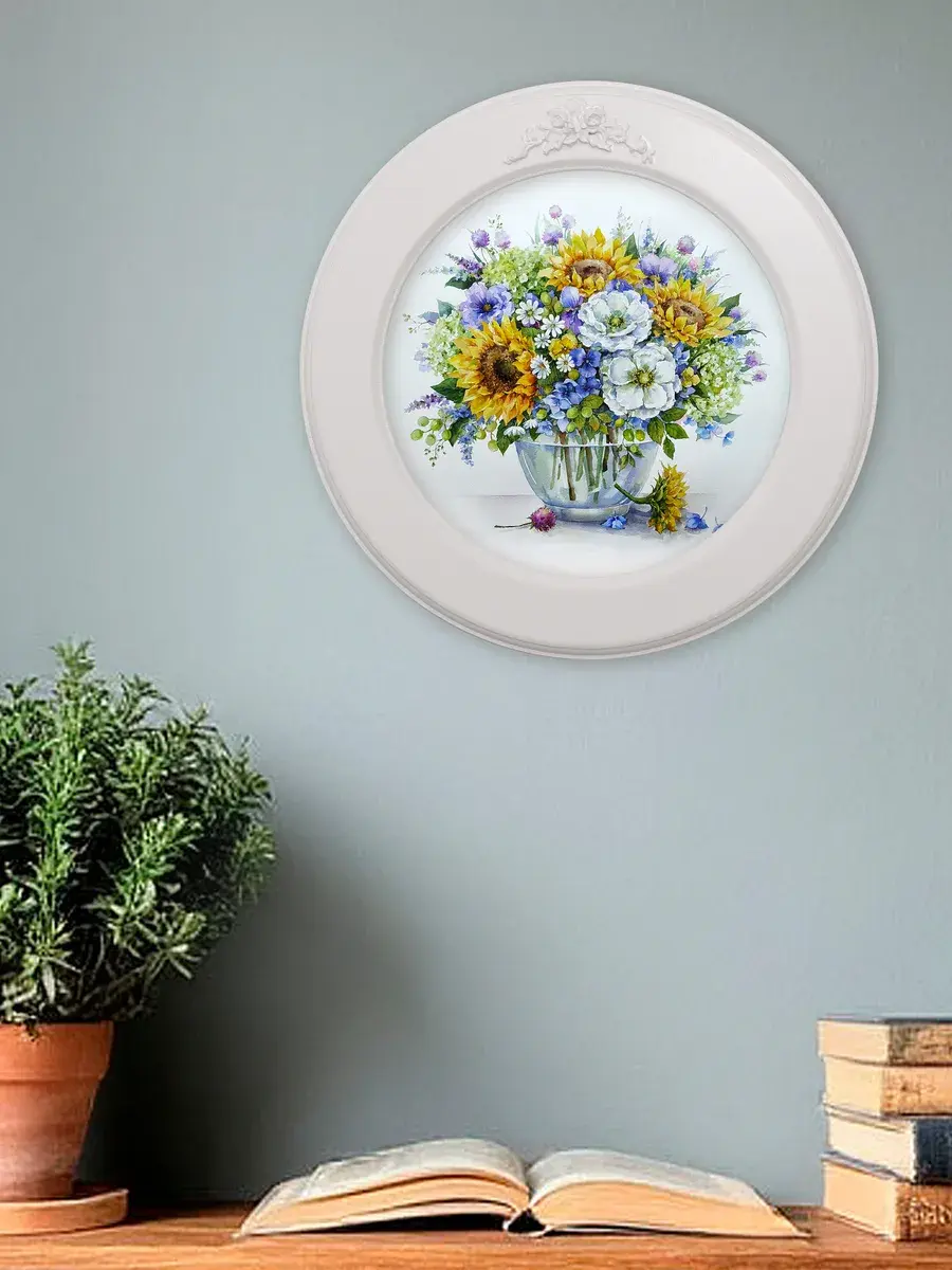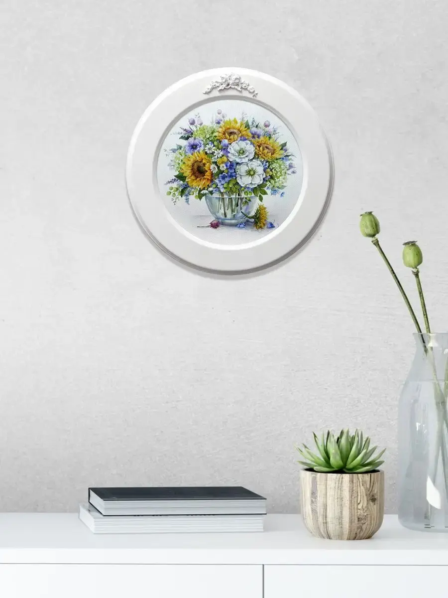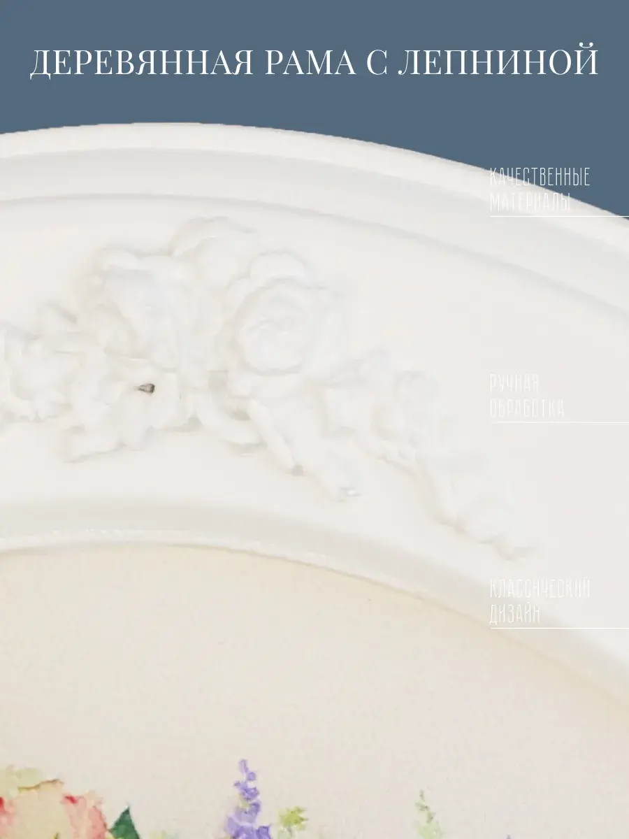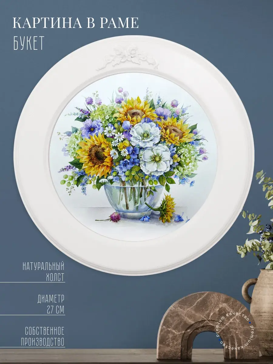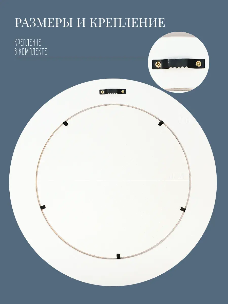 Картина напечатана на натуральном холсте, покрыта матовым лаком в круглой белой раме, станет прекрасным украшением интерьера. Множество вариантов дает возможность создать собственную коллекцию. Рама изготовлена из цельного листа МДФ 10 мм, не имеет зазоров и стыков. Окрашена экологичной акриловой эмалью в белый цвет. Крепление для стены в комплекте.