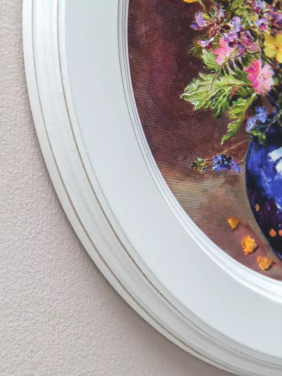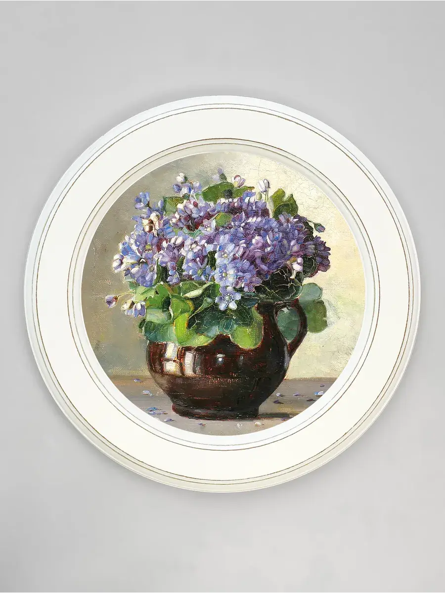 Картина напечатана на натуральном холсте, покрыта матовым лаком в круглой белой раме станет прекрасным украшением интерьера. Рама состарена вручную. Множество вариантов дает возможность создать собственную коллекцию. Композицию из нескольких картин можно дополнить зеркалом, оформить свои творческие работы или фотографии в раму. Картины с лавандой и разнообразными букетами прекрасный подарок. Настенные картины для украшения дома и дачи, добавят уюта на кухне и в детской комнате. Рама изготовлена из цельного листа МДФ 16 мм, не имеет зазоров и стыков. Окрашена экологичной акриловой эмалью в белый цвет. Диаметр картины 27 см, диаметр изображения 19 см. Крепление для стены в комплекте.