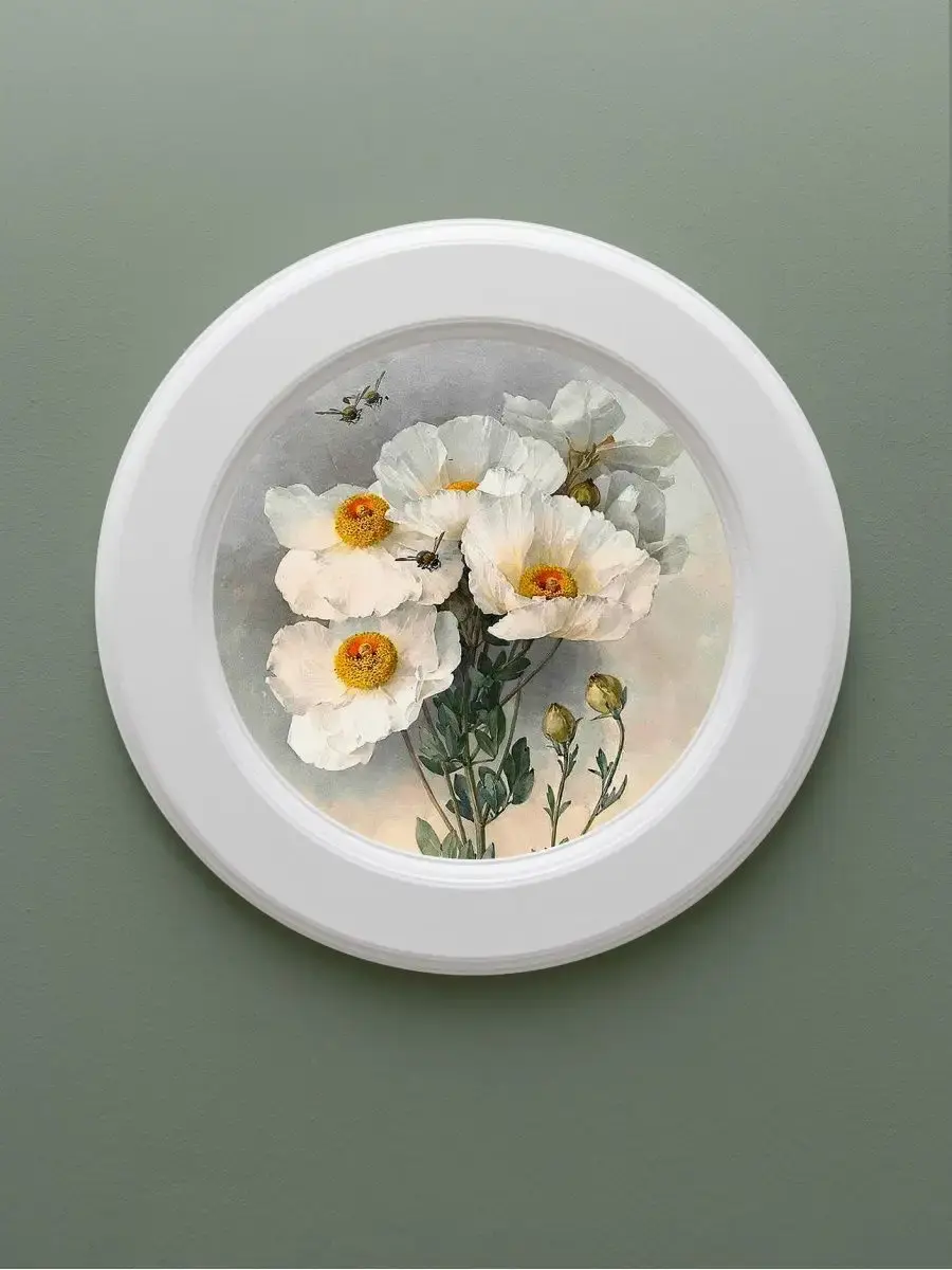 Картина напечатана на натуральном холсте, покрыта матовым лаком в круглой белой раме, станет прекрасным украшением интерьера. Множество вариантов дает возможность создать собственную коллекцию. Рама изготовлена из цельного листа МДФ 16 мм, не имеет зазоров и стыков. Окрашена экологичной акриловой эмалью в белый цвет. Крепление для стены в комплекте.
