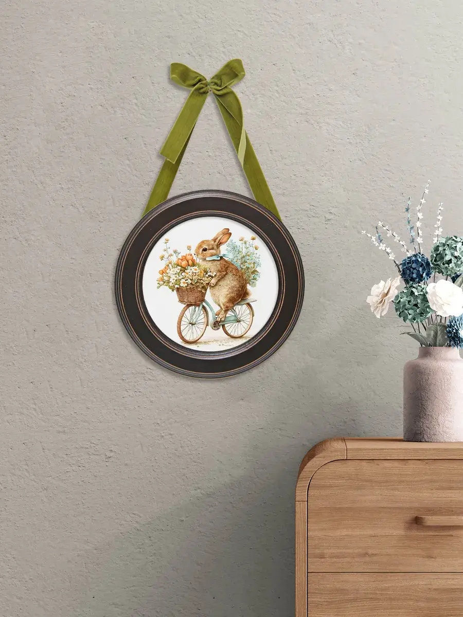 Настенный декор в нежных пастельных тонах с милыми зайчиками в раме приятного шоколадно-коричневого цвета. Бархатная лента благородного зеленого цвета добавляет картине изысканности. Картина напечатана на натуральном холсте, покрыта матовым лаком станет прекрасным дополнением и украшением интерьера.