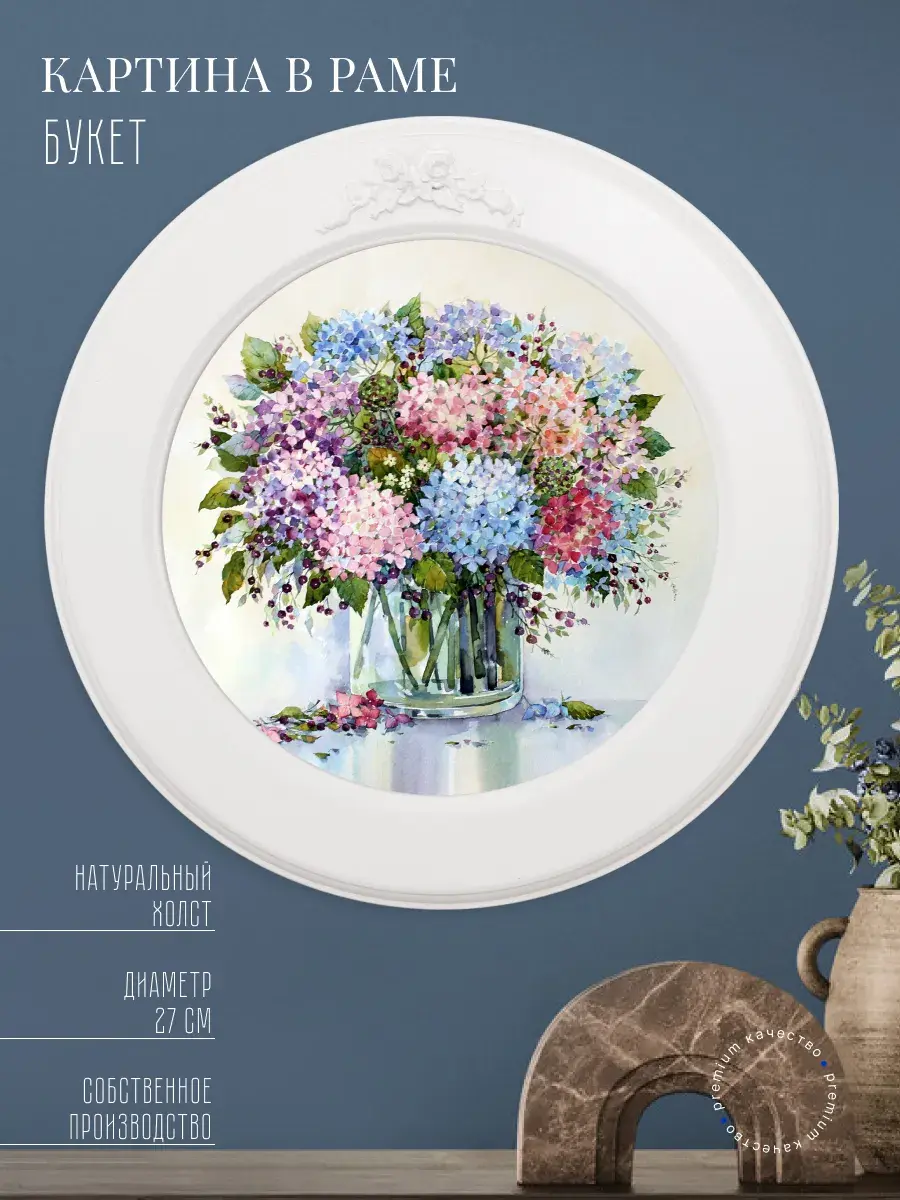 Картина напечатана на натуральном холсте, покрыта матовым лаком в круглой белой раме, станет прекрасным украшением интерьера. Множество вариантов дает возможность создать собственную коллекцию. Рама изготовлена из цельного листа МДФ 10 мм, не имеет зазоров и стыков. Окрашена экологичной акриловой эмалью в белый цвет. Крепление для стены в комплекте.