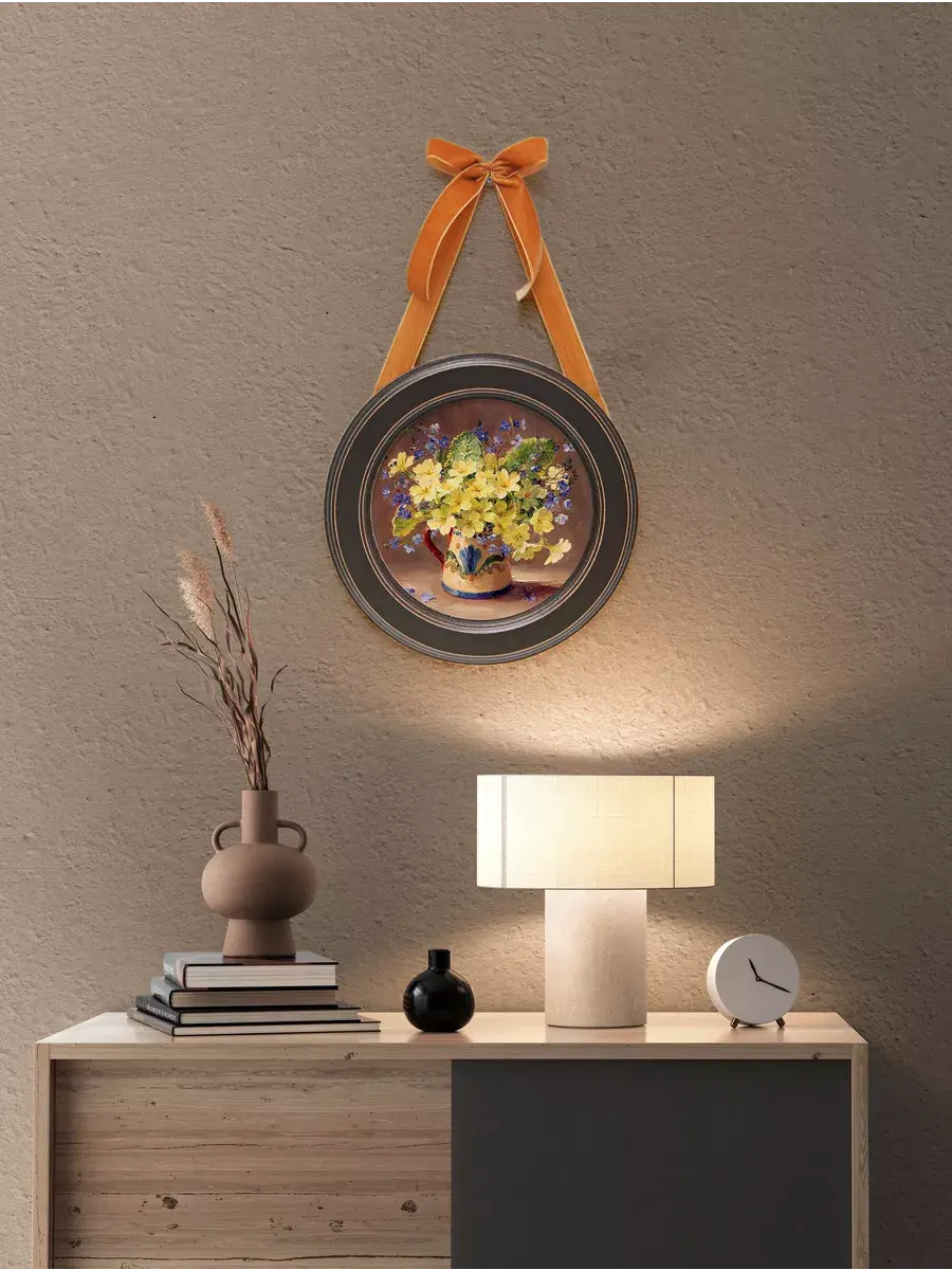 Настенный декор в нежных пастельных тонах с красивыми букетами в раме приятного шоколадно-коричневого цвета. Бархатная лента цвета яркой охры добавляет картине изысканности. Эта не большая картина станет стильным акцентом в вашем интерьере. Она идеально подойдет для оформления стен в различных помещениях: от кухни до спальни, от гостиной до прихожей. Настенное панно выполнено на холсте и отличается яркими цветами, изображающими цветы, что придаст уют и свежесть любому дому или квартире. Декоративное оформление в рамке добавит элегантности и завершенности, делая картину не только предметом декора, но и важной частью атмосферы пространства. Это решение отлично впишется в интерьер офиса, зала или любой комнаты, создавая ощущение счастья и гармонии. Пусть данное предметы искусства придаст вашему дому индивидуальность и изысканный стиль.