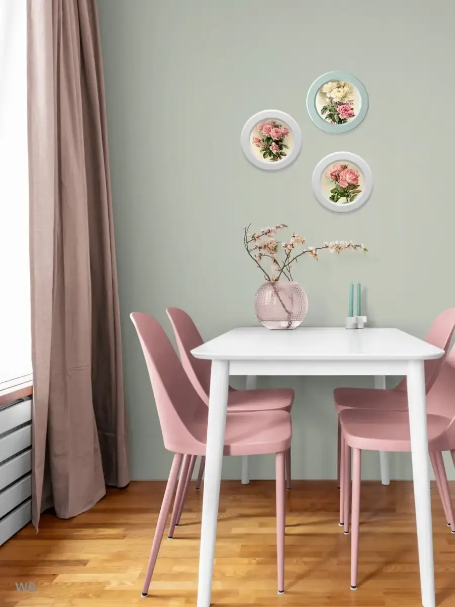 Настенный декор в нежных пастельный тонах с изящными цветами в белоснежной раме.