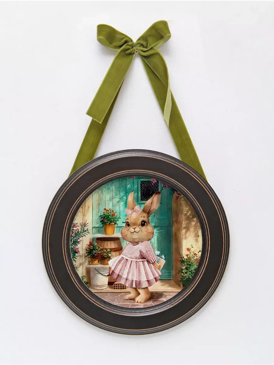 Настенный декор в нежных пастельных тонах с милыми зайчиками в раме приятного шоколадно-коричневого цвета. Бархатная лента благородного зеленого цвета добавляет картине изысканности. Картина напечатана на натуральном холсте, покрыта матовым лаком станет прекрасным дополнением и украшением интерьера.