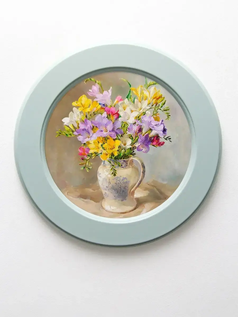 Настенный декор в нежных пастельный тонах с изящными птичками в нежной бирюзовой раме. Настенная картина на холсте станет стильным дополнением интерьера вашей кухни или спальни. Эти современные картинки привносят в атмосферу уют и гармонию, отлично сочетаясь с любым декором. Маленькая картинка идеально впишется в прихожую или на стену рядом с кроватью, добавляя изюминку в обстановку. Интерьерные элементы, такие как эта картина, помогают создать завершенный и продуманный дизайн, который будет радовать глаз и поднимать настроение каждый день.Картина напечатана на натуральном холсте, покрыта матовым лаком в круглой белой раме станет прекрасным украшением интерьера. Множество вариантов дает возможность создать собственную коллекцию. Коллекцию можно дополнить зеркалом, оформить свои творческие работы или фотографии в раму. Рама изготовлена из цельного листа МДФ 16 мм, не имеет зазоров и стыков. Окрашена экологичной акриловой эмалью в бирюзовый цвет. Диаметр картины 27 см, диаметр изображения 19 см. Крепление для стены в комплекте.