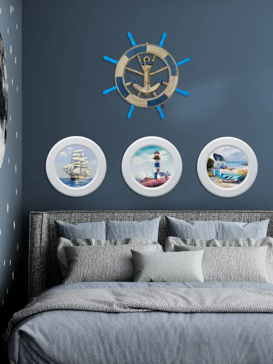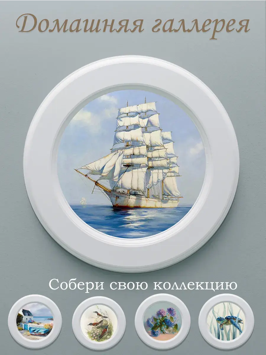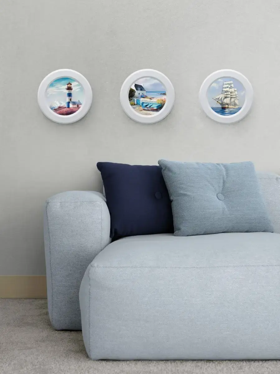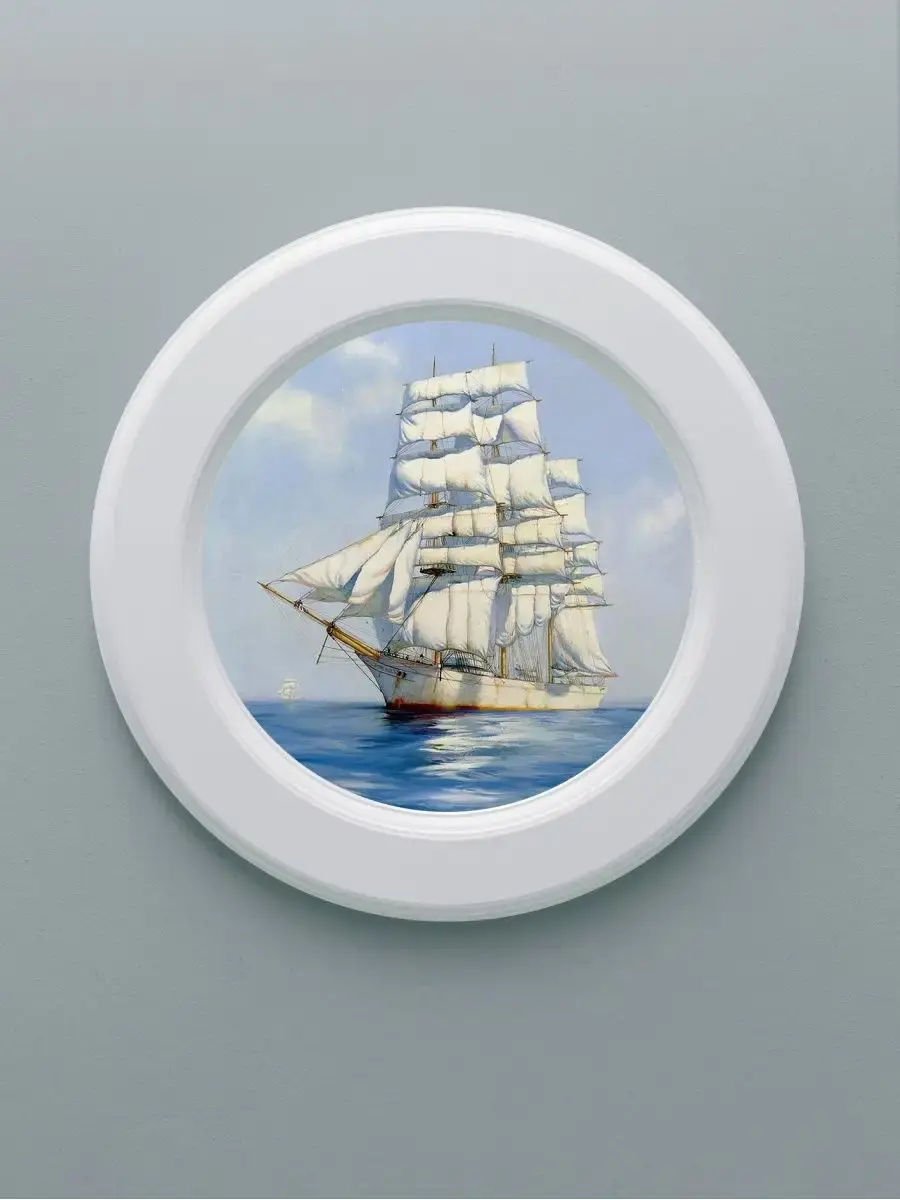 Настенный декор в нежных пастельный тонах в морской тематике в белоснежной раме. Картина напечатана на натуральном холсте, покрыта матовым лаком в круглой белой раме станет прекрасным украшением интерьера.
