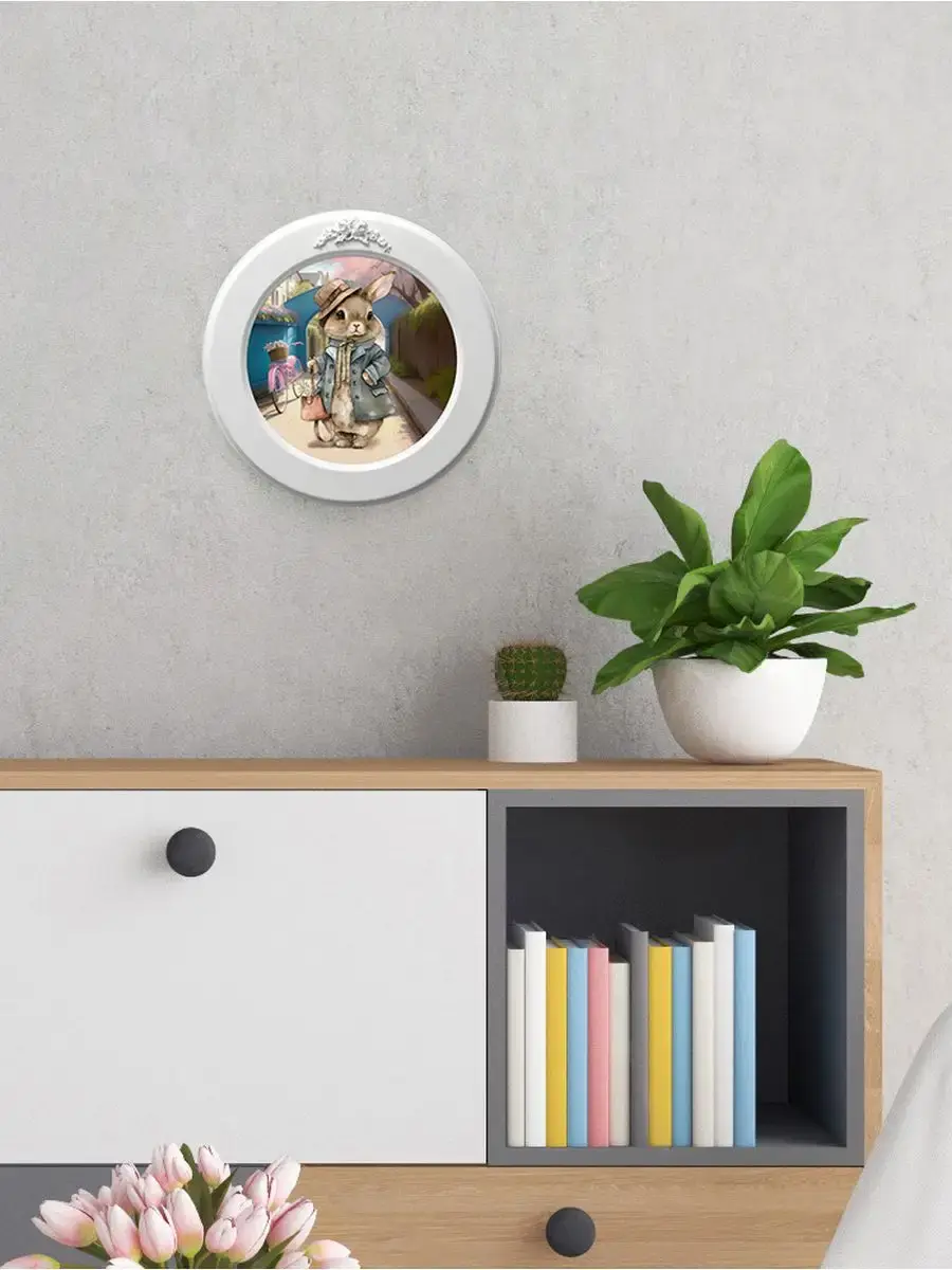Картина напечатана на натуральном холсте, покрыта матовым лаком станет прекрасным дополнением и украшением интерьера. Милый сувенир подарок. Рама изготовлена из цельного листа МДФ 10 мм, не имеет зазоров и стыков. Окрашена экологичной акриловой эмалью в белый цвет. Диаметр картины 27 см, диаметр изображения 20 см. Крепление для стены в комплекте.