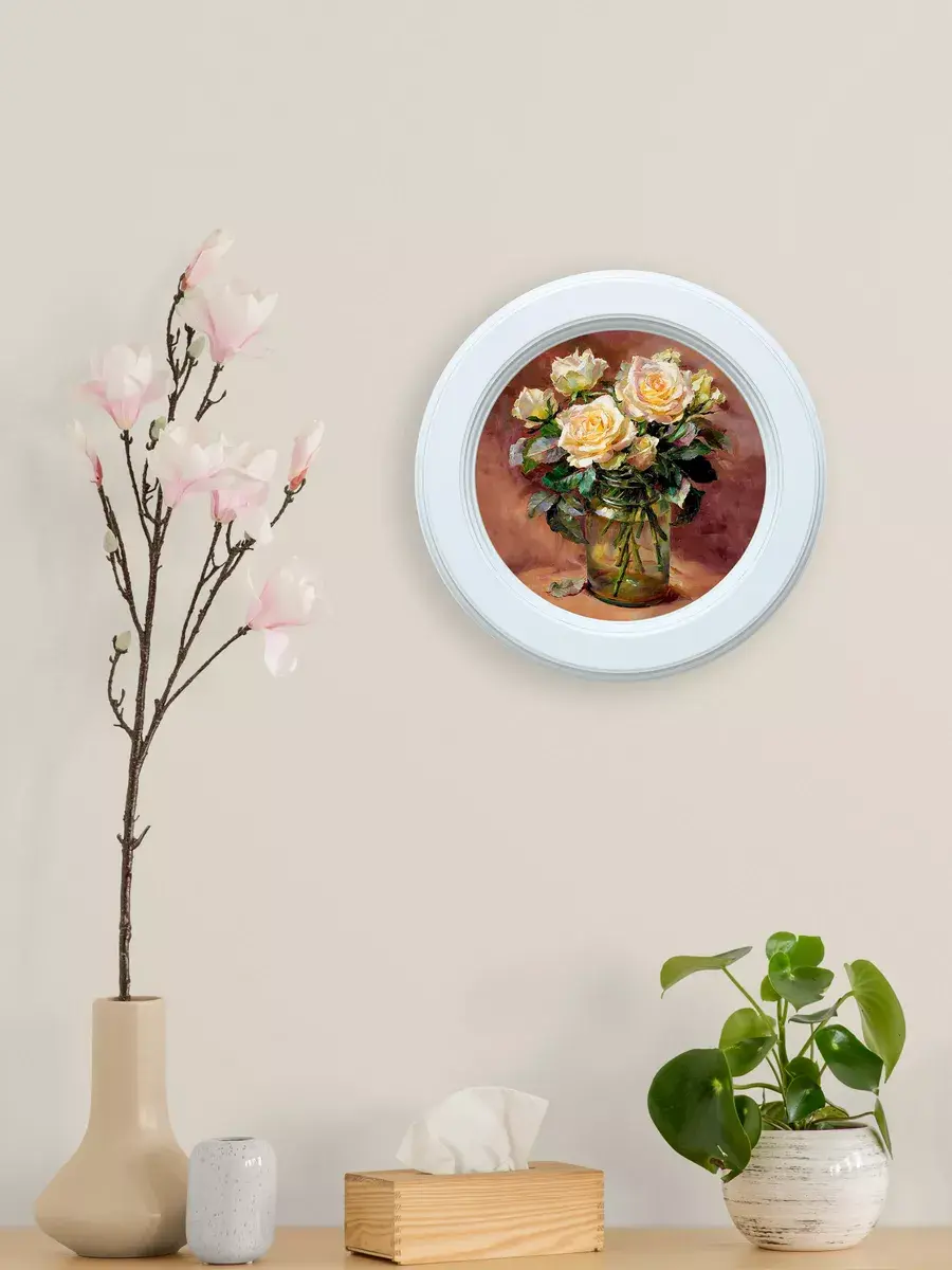 Картина напечатана на натуральном холсте, покрыта матовым лаком в круглой белой раме станет прекрасным украшением интерьера. Рама состарена вручную. Множество вариантов дает возможность создать собственную коллекцию. Композицию из нескольких картин можно дополнить зеркалом, оформить свои творческие работы или фотографии в раму. Картины с лавандой и разнообразными букетами прекрасный подарок. Настенные картины для украшения дома и дачи, добавят уюта на кухне и в детской комнате. Рама изготовлена из цельного листа МДФ 16 мм, не имеет зазоров и стыков. Окрашена экологичной акриловой эмалью в белый цвет. Диаметр картины 27 см, диаметр изображения 19 см. Крепление для стены в комплекте.