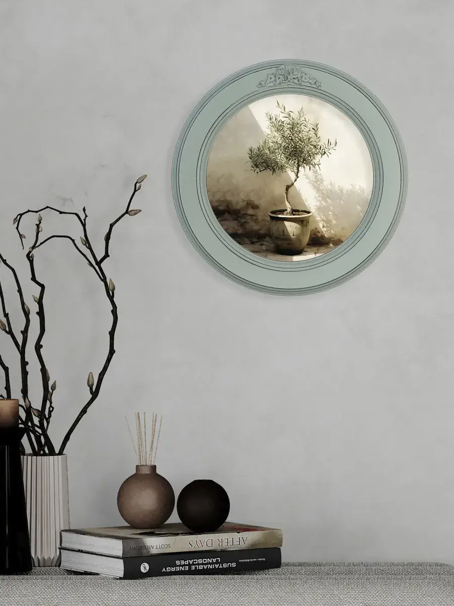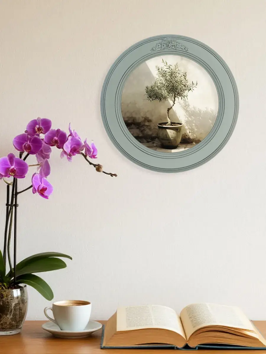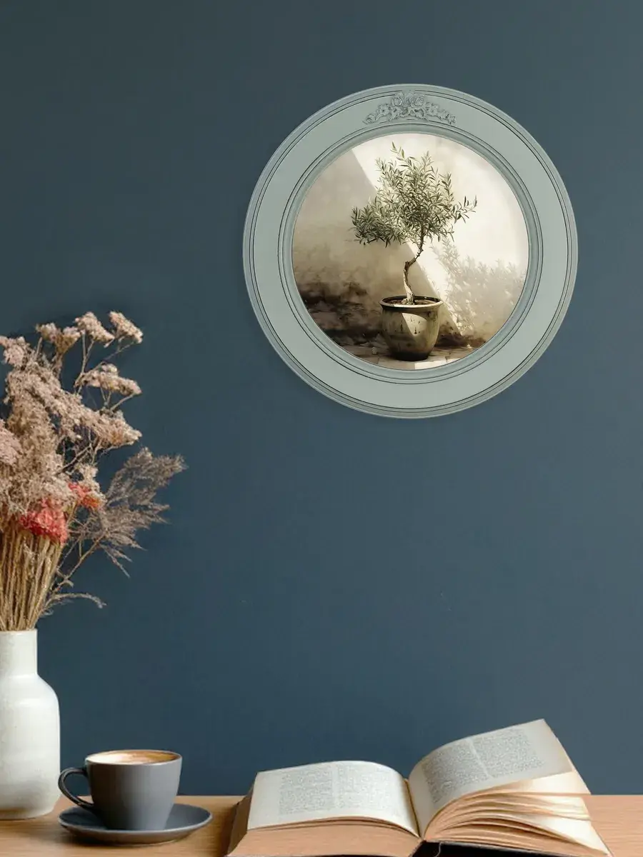 Настенный декор в нежных пастельный тонах в мятной раме с лепниной с эффектом состаривания. Картина в стиле Прованс напечатана на натуральном холсте, покрыта матовым лаком в круглой раме мятного цвета станет прекрасным украшением интерьера. Множество вариантов дает возможность создать собственную коллекцию. Настенные картины с изображением лаванды для украшения дома и дачи, добавят уюта на кухне, гостиной, прихожей и в детской комнате. Рама изготовлена из цельного листа МДФ 16 мм, не имеет зазоров и стыков. Окрашена экологичной акриловой эмалью в мятный цвет, состарена вручную. Диаметр картины 27 см, диаметр изображения 19 см. Крепление для стены в комплекте.