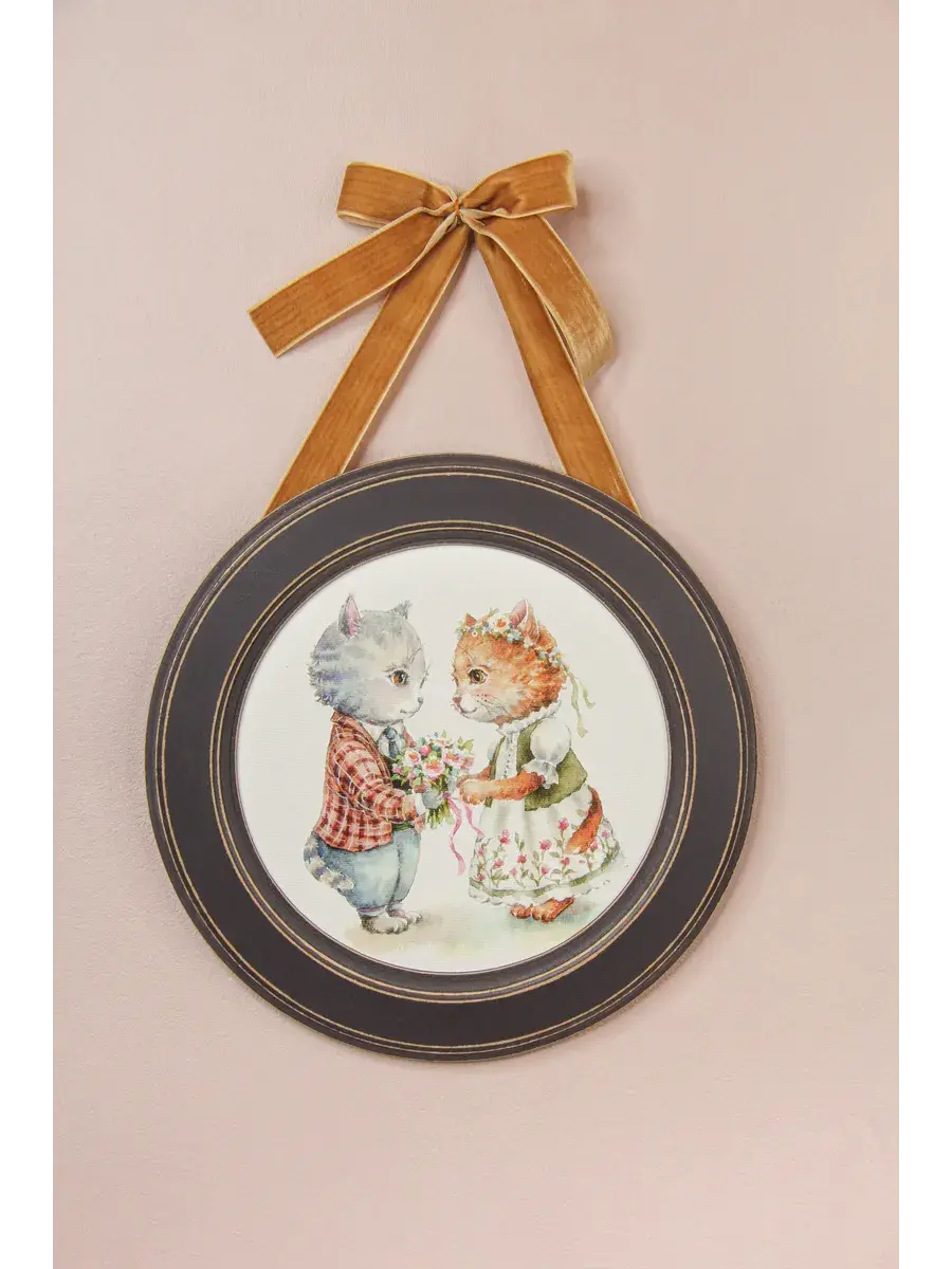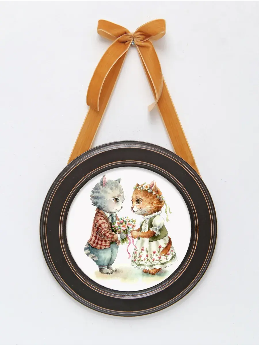 Настенный декор в нежных пастельных тонах с милыми зайчиками в раме приятного шоколадно-коричневого цвета. Бархатная лента благородного зеленого цвета добавляет картине изысканности. Картина напечатана на натуральном холсте, покрыта матовым лаком станет прекрасным дополнением и украшением интерьера.